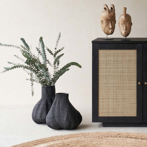 Basket | Gourd - Black (Small) Gourd Basket, Unique home accessory from Africa. Hand-woven into organic statement shapes. Variations exist in weaves, colours, and shapes. From $150