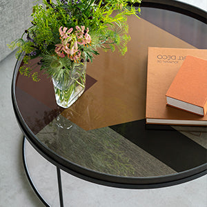 The Composed Angles collection creates a serene rhythm through its overlapping shapes and colours. With a layered design, the screen-printed glass showcases both translucent and opaque elements, each layer seemingly defining the next, resulting in an intriguing and harmonious balance.