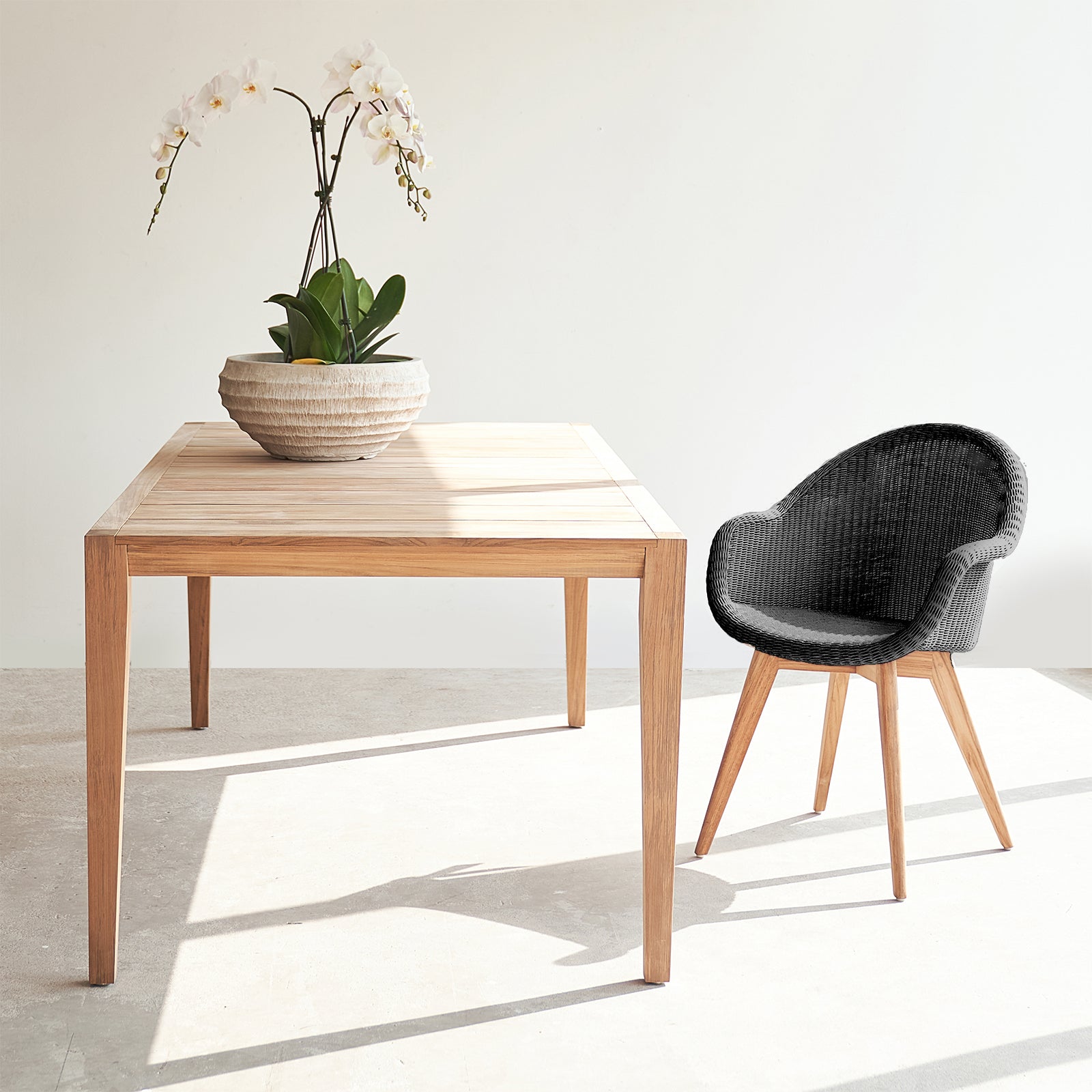 • The Avril dining chair is suited for contemporary interiors with its contrasting combination of Vincent Sheppard’s signature Lloyd Loom weave as the seat and solid teak base.