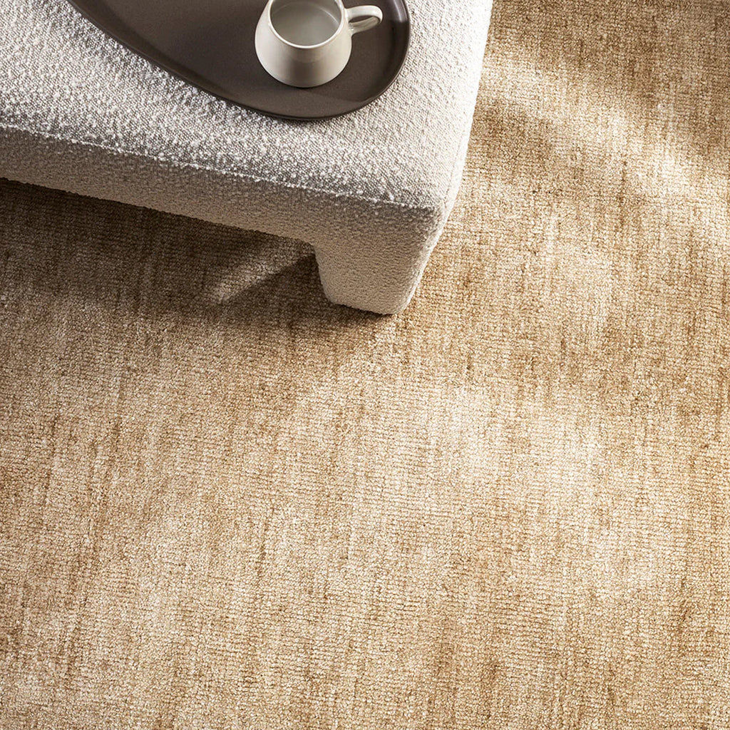 Rug Composition: 50% bamboo silk, 50% wool. Rug Depth: 8mm Initial shedding is common as the fibres settle. Lightly vacuum regularly using suction only. Avoid using a brush head, as this can cause matting of the fibres. Pop-ups occur when fibre ends or loops wriggle loose vand appear above the natural pile height of the rug. Pop-ups are common in handwoven rugs and are not considered a fault. Maintain by trimming or pushing through to the underside.