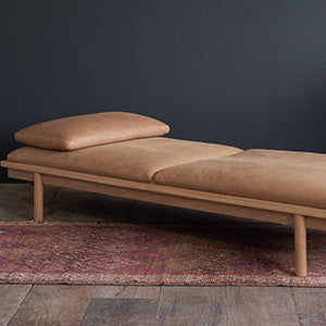 Distinctively unique with its minimalistic silhouette, the Pensive Daybed is a modern interpretation of mid-century design. The long and low proportions of the Pensive daybed encourage and rest and reflection. It shares the same wooden base and intersecting leg detail as the Pensive sofa and armchair, making it the perfect companion. It also stands alone with equal confidence.