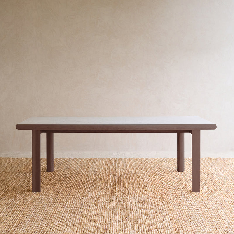 The Blend Dining Table combines a solid oak frame with a refined marble top for a clean, balanced look Generous proportions with softly rounded edges, designed for everyday dining and entertaining. Finished with a hard-wearing clear satin lacquer finish which keeps it looking good and ensures easy maintenance. Flat-packed, assembly on delivery To protect the surface from heat and prevent marks and stains, always use a trivet or a coaster underneath hot plates, pans, or mugs. Use felt stoppers when you place decorative objects on the surface to prevent scratches or marks. Do not place sharp or jagged objects directly on the tabletop. Wipe with a soft, damp cloth; avoid the use of harsh chemicals or abrasive cleaning materials.