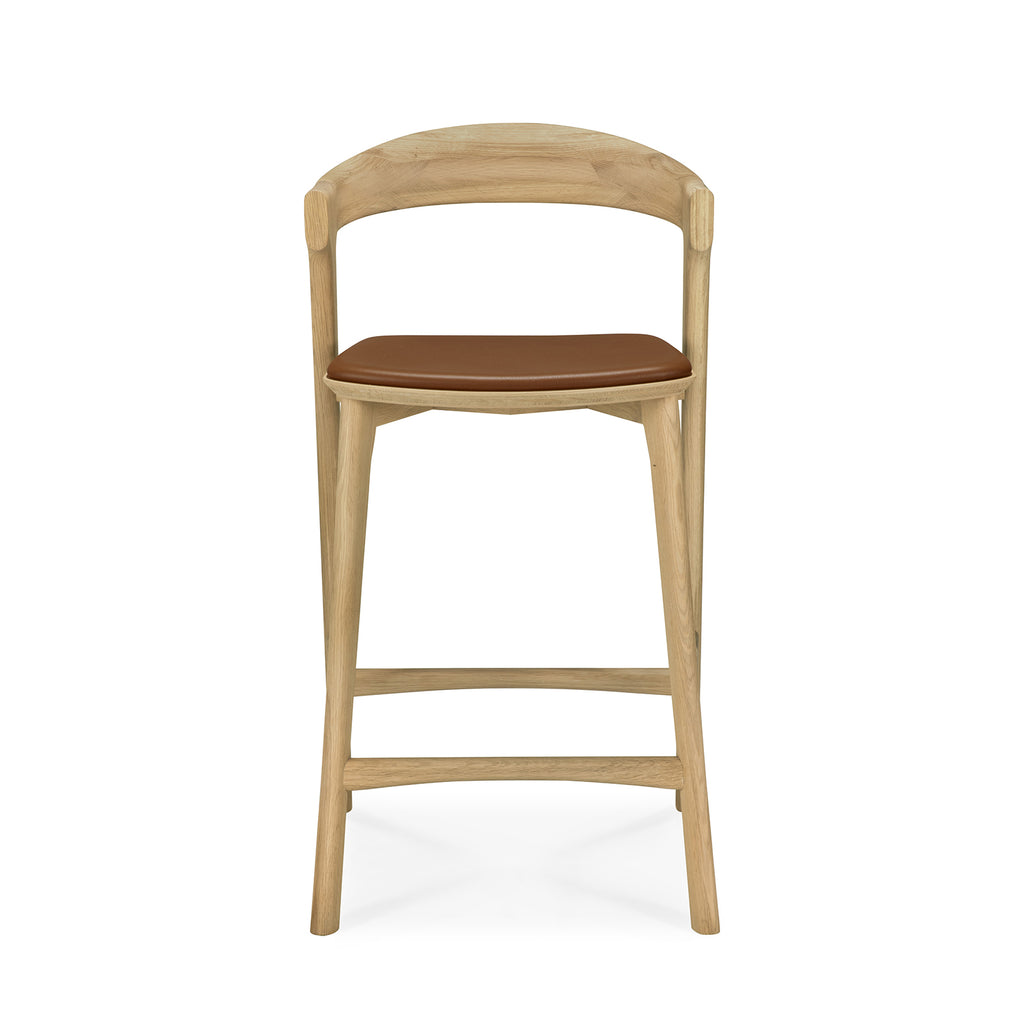 Designed for durability, the Bok Counter Stool is crafted with a solid oak timber frame and upholstered seat and backrest. Features a classic silhoutte with a graceful and airy form. Spot clean for any small stain or marks. Wipe timber with a clean dry lint-free cloth. Do not use any harsh or abrasive cleaning products as it may damage the finish of the wood.