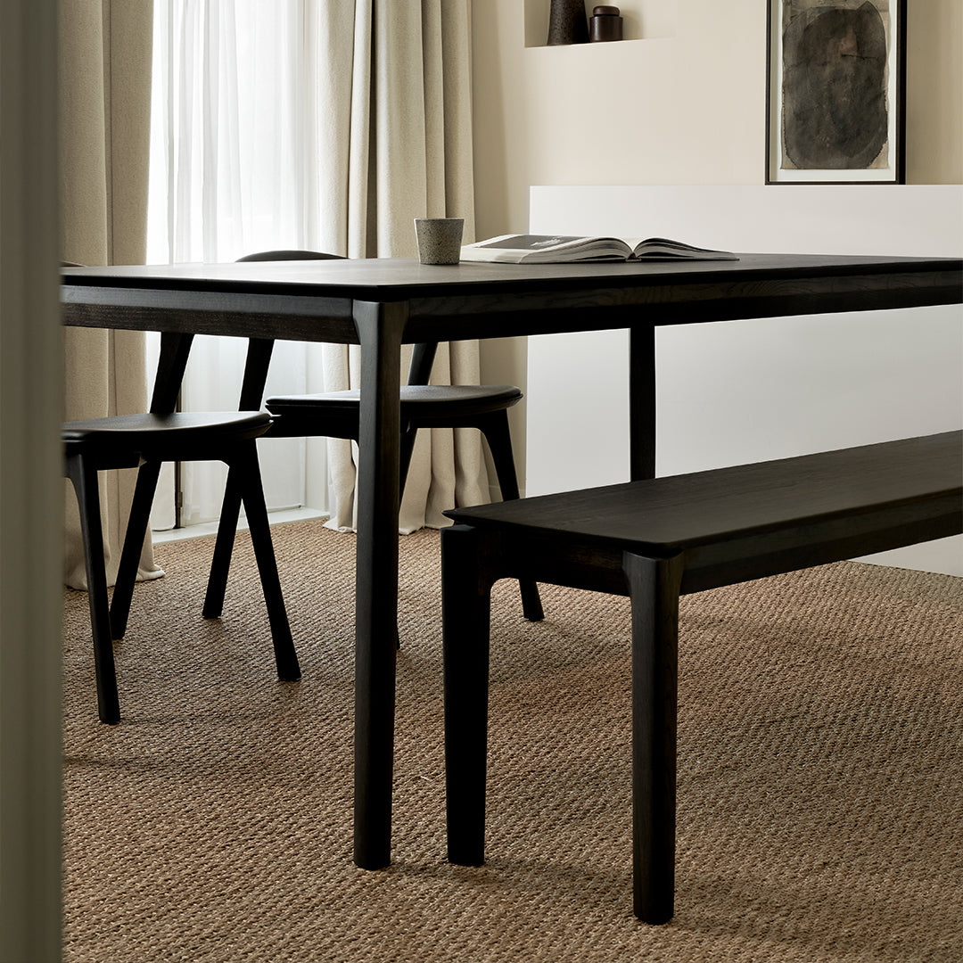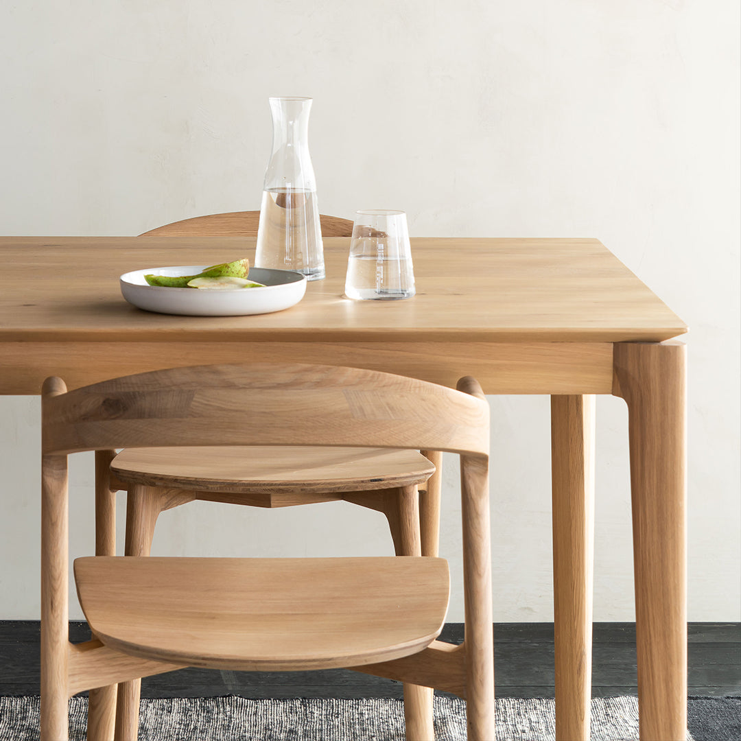 Just like its matching seating, the Bok dining table has become one of our signature designs. Its airy shape yet rock solid construction make this piece a timeless and remarkable design to enjoy for years to come. Available in oak, black stained oak and natural teak, the Bok dining table is an ideal gathering place for families and friends to share a meal and enjoy time together. The Bok can accommodate any dining room, as it comes in extendable and round versions as well as the original size.