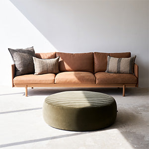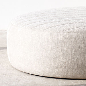 The Brie Ottoman draws inspiration from cheese wheels, featuring a round, plush design that brings a playful charm to any space. Skilful craftsmanship comes together to create a versatile seating option for lounges. Upholstered with high-quality fabric, featuring a quilted top with varying textures. Fabric dye lots vary; pieces purchased at different times may not match exactly. To minimise fading, avoid placing in direct sunlight.