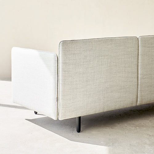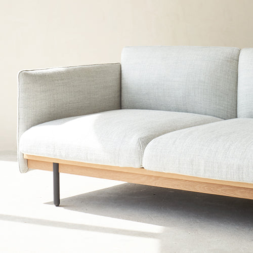The Byron Bay Sofa exudes a clean and simple form, adding an element of understated elegance to any living space. The sleek black epoxy powder-coated legs, paired with oak, create a strikingly beautiful & modern aesthetic. Elevated design allows easy access for thorough cleaning underneath, simplifying maintenance for a seamless living experience. High resilience foam seat with full feather and down wrap for extra comfort. Our sofa features a high-quality webbing suspension system for a supportive and comfortable seating experience. The narrow arms of this sofa is designed to maximize the seating area, providing ample room for you and your guests to relax and unwind. Our sofa offers firm, reliable seating for lasting comfort and support. Professional upholstery cleaning recommended. Vacuum with an upholstery attachment to remove dust. To minimize fading, avoid placing in direct sunlight.