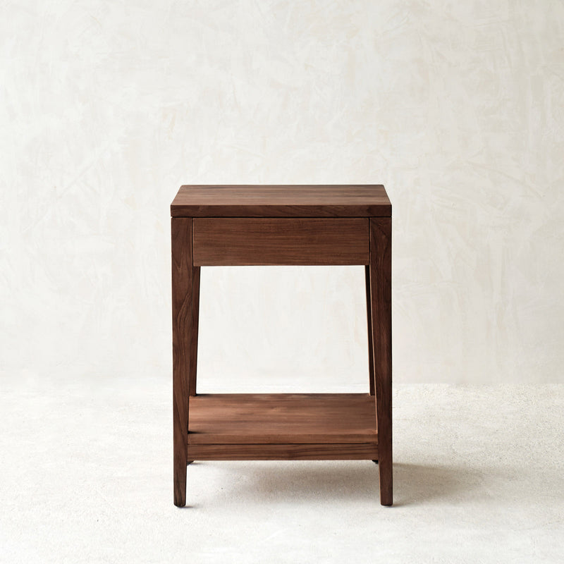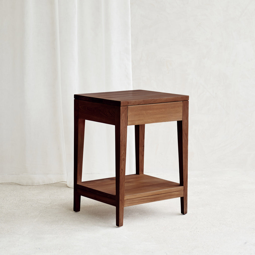 The Catalina bedside table is fashioned with an effortless design that will bring colour and warmth to your bedroom. Features a drawer which is perfect for storing things you like to keep within reach of the bed. Crafted from premium, Grade A sustainably sourced teak wood, emanating warmth and lasting quality. Each piece of teak is ethically sourced. Embrace the timeless beauty of this premium teak's natural finish, crafted sustainably to bring elegance to your space. Wipe timber to remove dust and dirt with a dry cloth. Wipe spills immediately using a damp cloth and natural soap, ensure you wipe the entire table top surface along the grain of the wood. Wipe with a soft, damp cloth; avoid the use of harsh chemicals or abrasive cleaning materials.