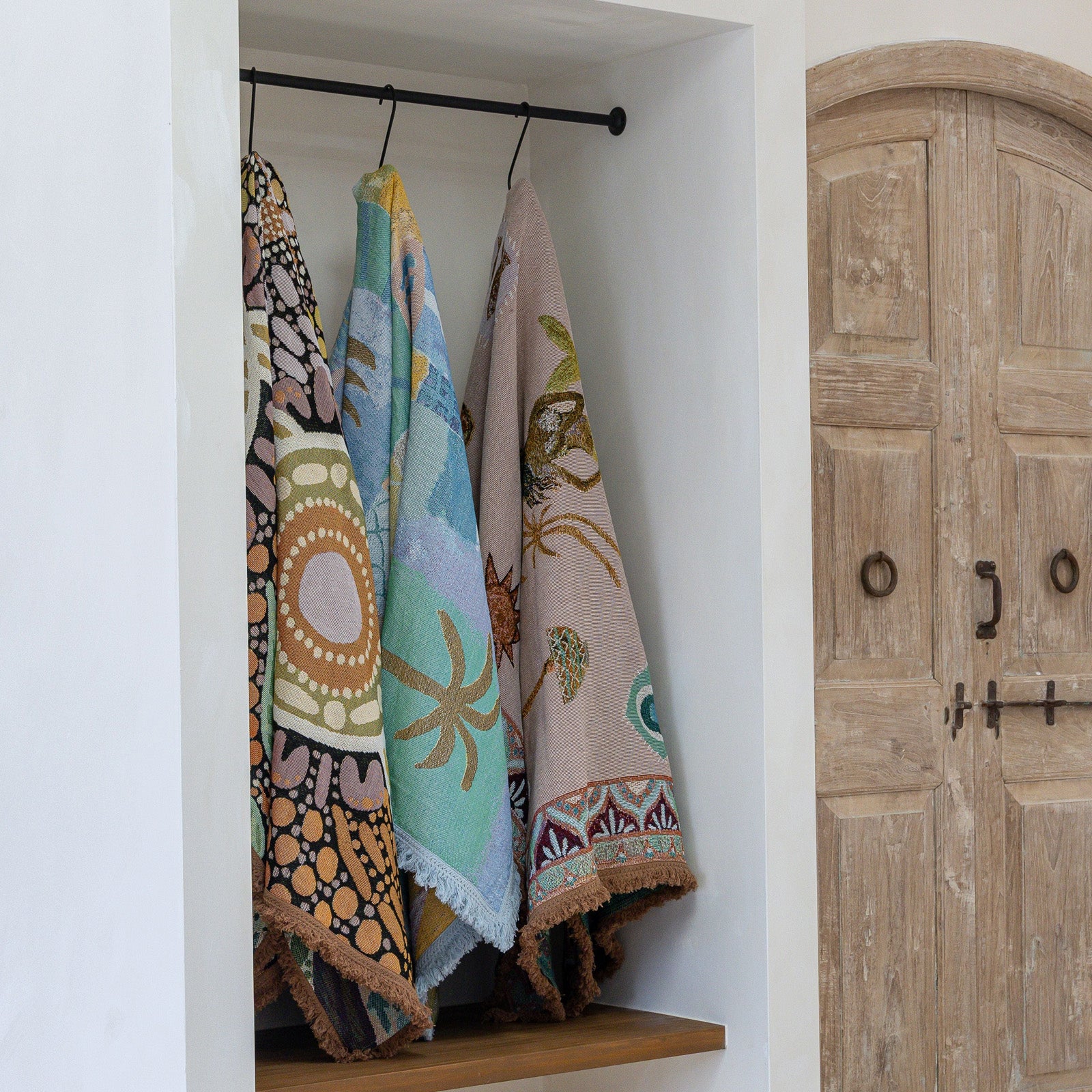 - Crafted for multiple uses, this throw can function as a picnic rug, bed or lounge accent, blanket, tablecloth, or wall hanging, combining practical utility with elegant design.