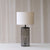 Illuminate your space with the Dalina Table Lamp featuring smoked glass sophistication. This modern luminary combines sleek design with a touch of mystery, casting a soft and alluring glow. The smoked glass adds an element of chic elegance, making it a statement piece in any room.