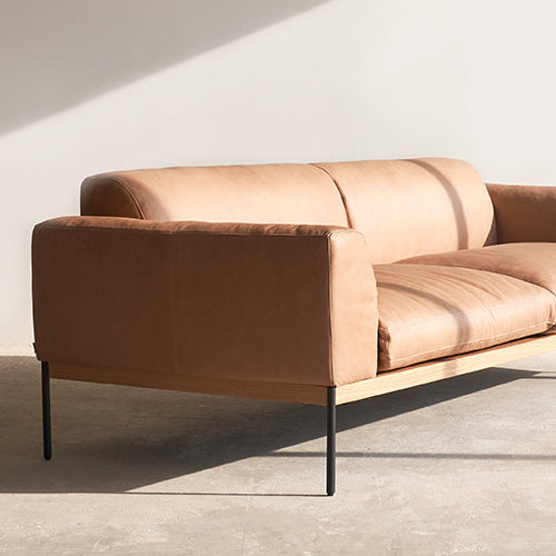 A straightforward solid wood plinth pairs seamlessly with slender metal legs, creating an elegant platform for the softly rounded upholstered sections. This design exemplifies a confident blend of commercial and domestic styles, offering a smart and comfortable look without being overly plush. Designed for ultimate comfort, the Department Sofa features plush, feather-wrapped seats that provide a luxurious sitting experience. Also available in modular configurations, it allows you to customise the layout to fit your space and lifestyle needs, ensuring both functionality and style.
