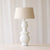 Sculptural yet understated, the Esino Table Lamp in Cream brings an artful touch to any room. Its metal base features bold geometric curves, finished in a soft matte cream for a contemporary, textural appeal. A natural linen or white shade complements the form with warm, diffused light, creating an inviting atmosphere. Perfect as a statement piece on a side table, console, or bedside, Esino blends modern design with timeless elegance.