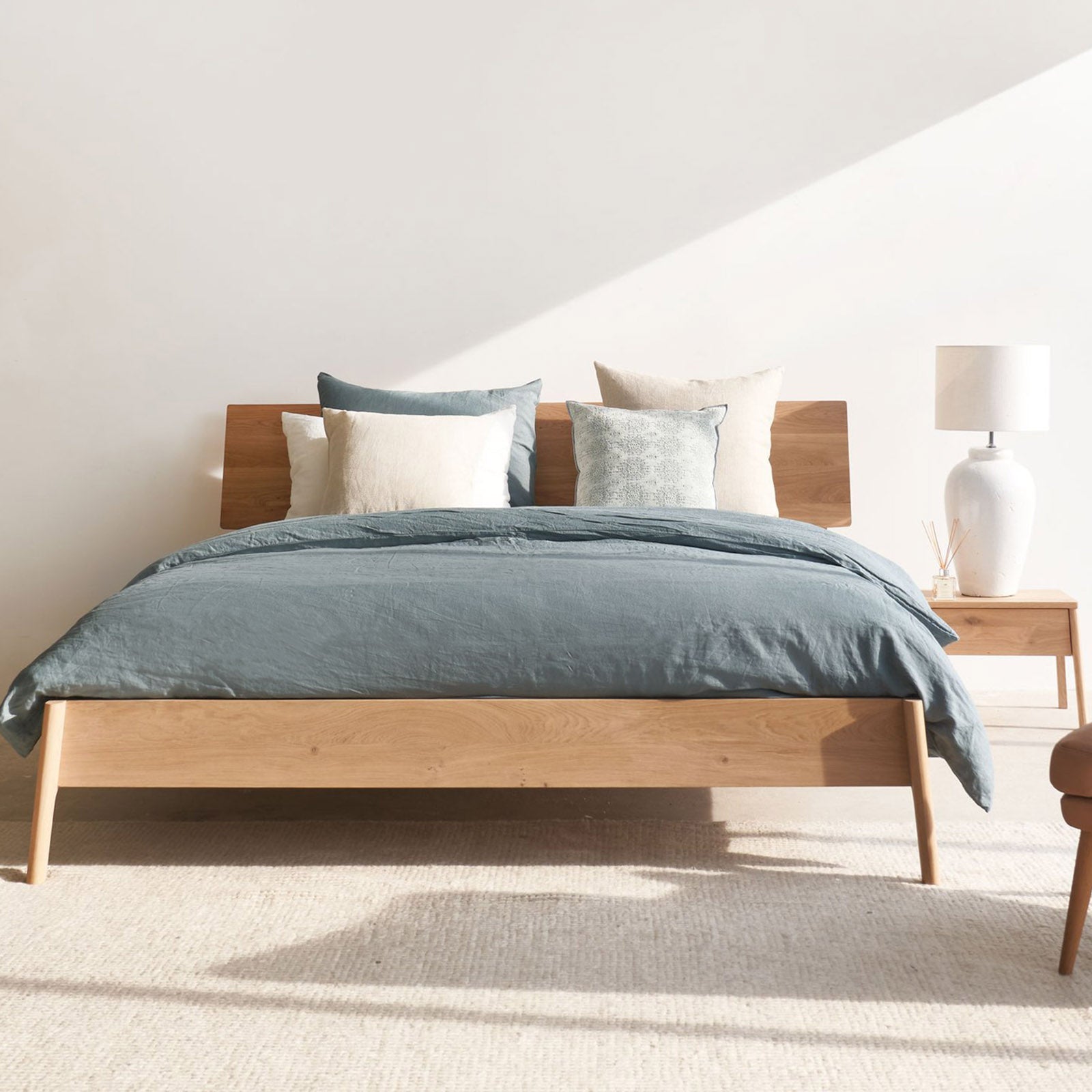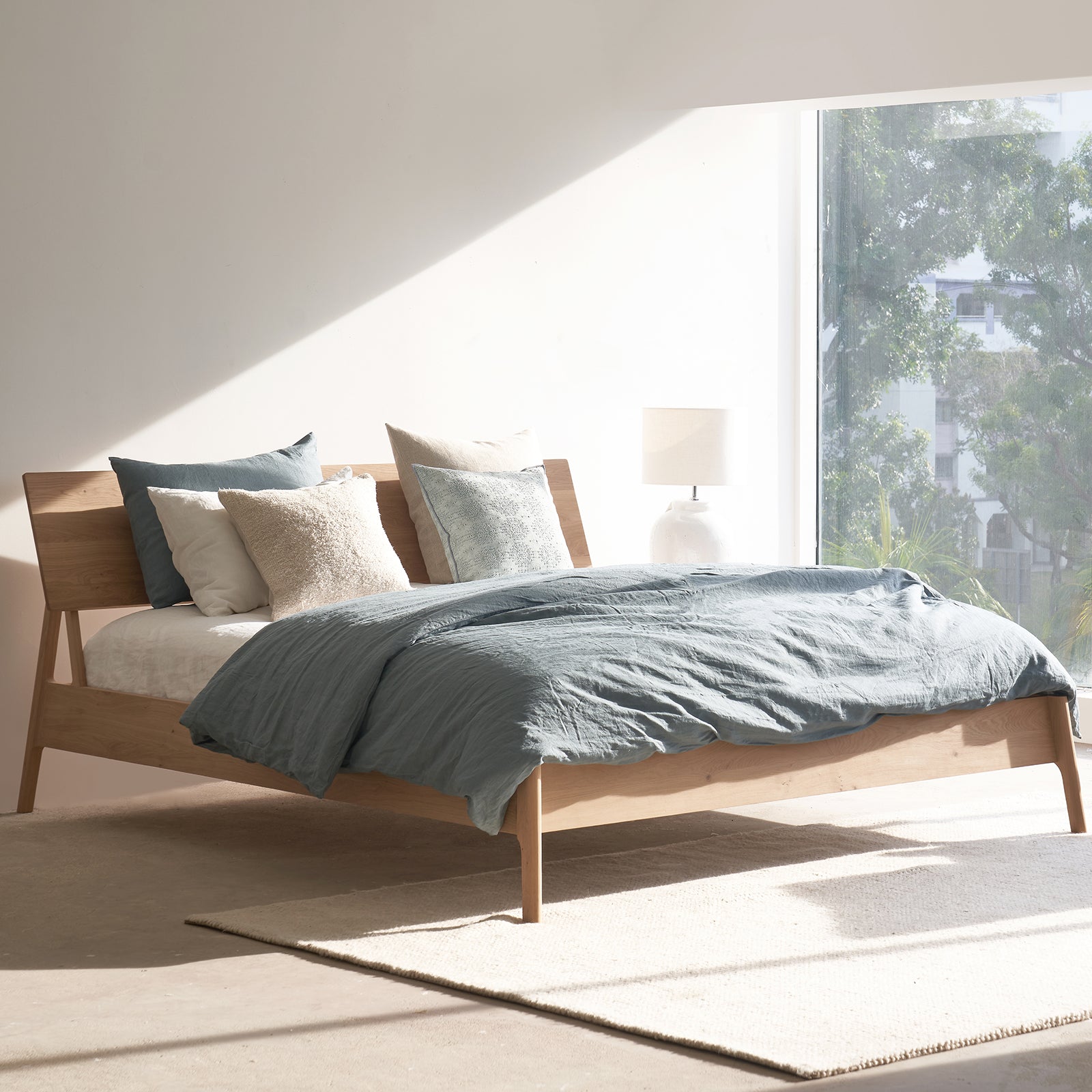 The Air Bed brings a touch of elegance to any bedroom with its soft curves and overall sense of lightness. A wonderful addition to enhance your sleep space. Crafted from solid light-colored European oak, this bed is a versatile addition that effortlessly complements any bedroom aesthetic. The bedframe is finished with a hard wearing clear lacquer finish which keeps it looking good and ensures easy maintenance. Available in four sizes:
