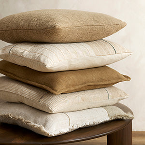 Many of our products are handmade by artisans who dye yarns, weave, and add finishing touches by hand. Featuring natural fibres and distinctive finishes, they reflect our passion for the handmade. Drawing inspiration from natural materials and nature, we take a thoughtful and deliberate approach to design. Our pared-back, minimal aesthetic instils a sense of restfulness, while textures and materials used bring an overall sense of quality.