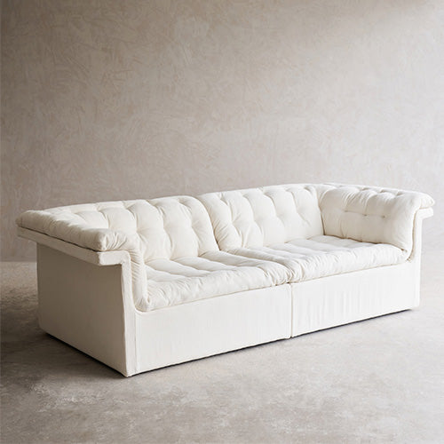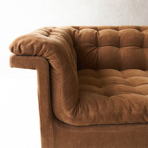 The Furrow Sofa balances classical and modern design, inspired by the Chesterfield's tufted motif and featuring a sleek, contemporary form. This blend of whimsy and sophistication makes it a standout addition to any living space, with attention to detail and craftsmanship highlighting its unique character and charm.
