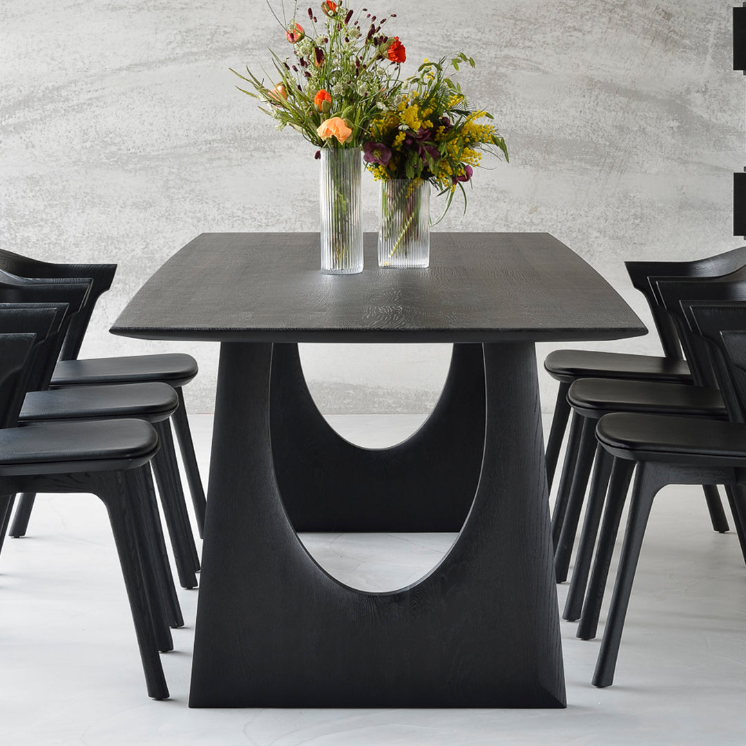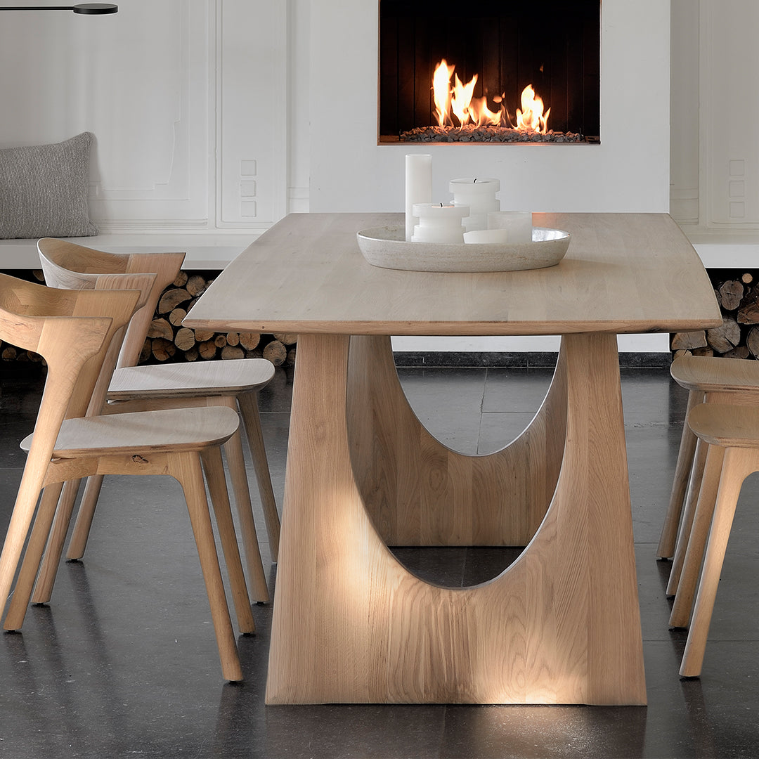 With enriched shapes and unexpected details, the Geometric solid oak dining table is truly grand, equally at home in the dining room or workspace. Luxury comes with its length, which is offset by softened edges and natural lines. Interesting shapes are in play to add volume and practical comfort.