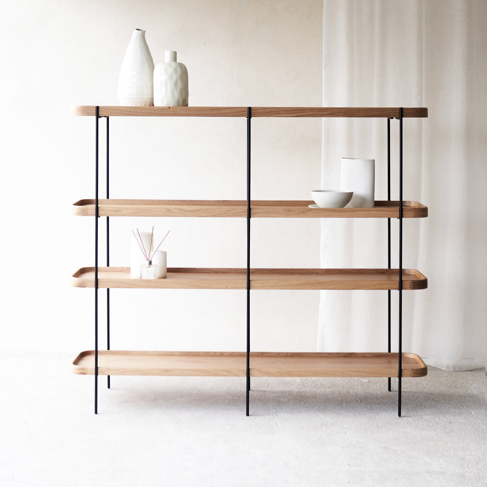 The Humla Tall Oak Rack provides excellent use and function with its four-tiered design and makes fantastic company in any living room. Its sleek frame is sturdy and reliable, holding up dual table tops which allow extra capacity to hold or display your favourite homewares and accessories. Leaving a creative statement wherever its placed, the Humla appeals to the tidy and modern living spaces.