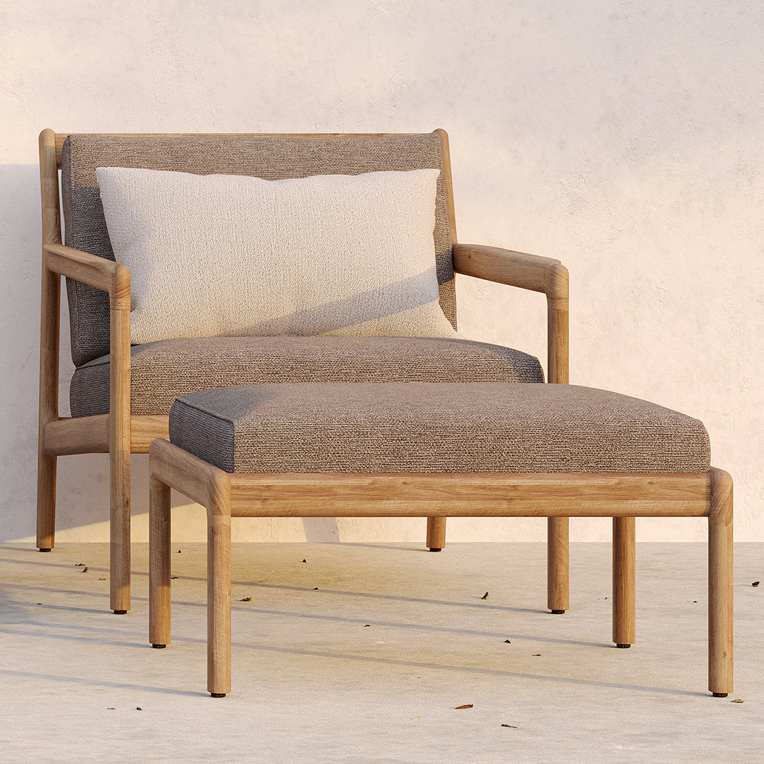 The Jack collection presents an exciting new design, inspired from the Danish designers from the 50s. “It has a classical look, with a modern touch,” says designer Jacques Deneef. The modern twist is given by the large cushions, of which the fabric has been woven exclusively for Ethnicraft in Belgium. The very light and thin structure was made possible thanks to technical innovation in woodworking. Beautiful from every angle, with sumptuous curves and forms, the Jack offers luxurious upholstered comfort and versatility to enjoy anywhere from an urban terrace to a countryside garden.