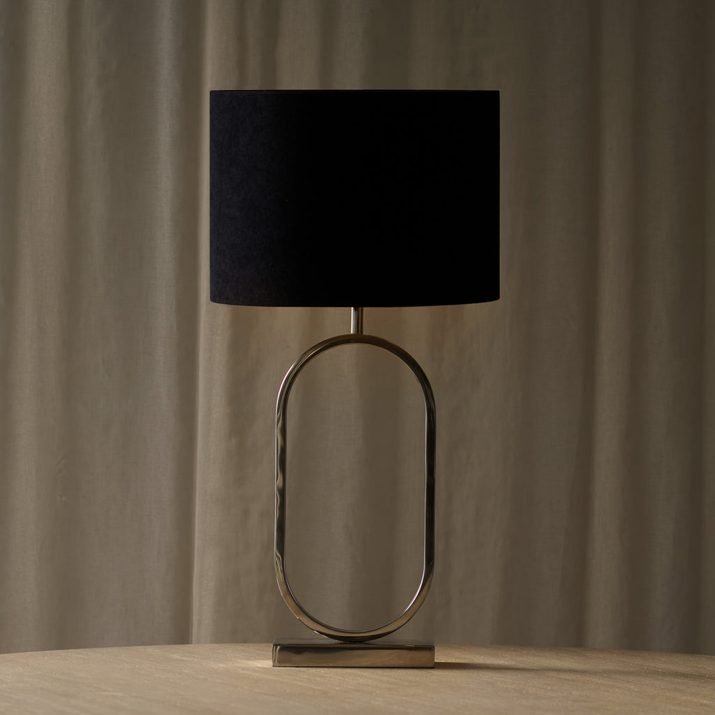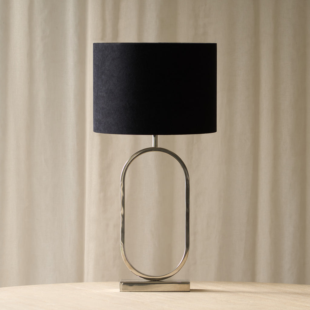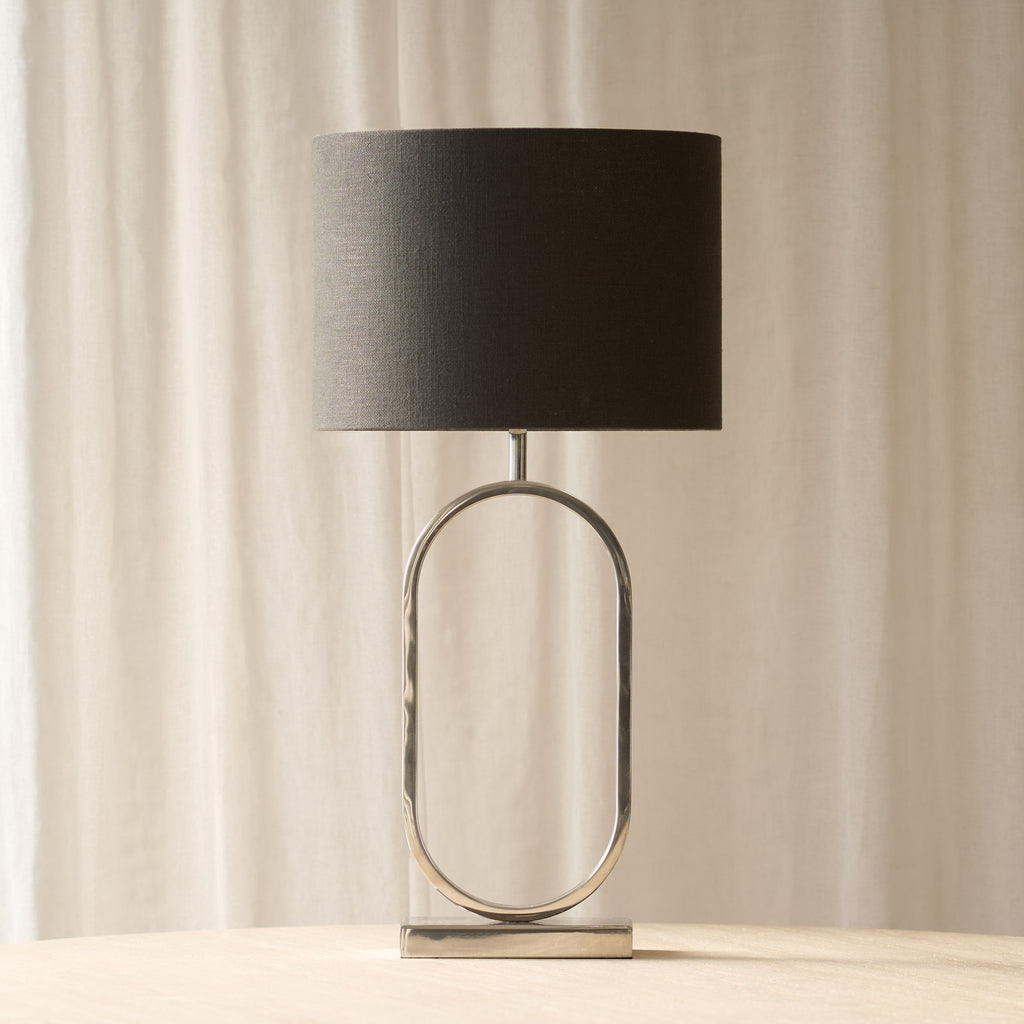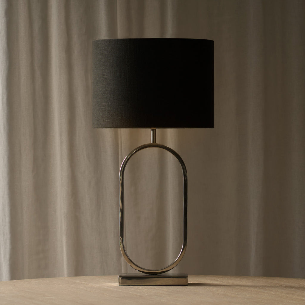 Jamiri Table Lamp | Nickel (45cm) Cylinder Shade Black and Taupe 35cm / Lamp Base - 20(W) x 10(D) x 50(H) cm / Nickel