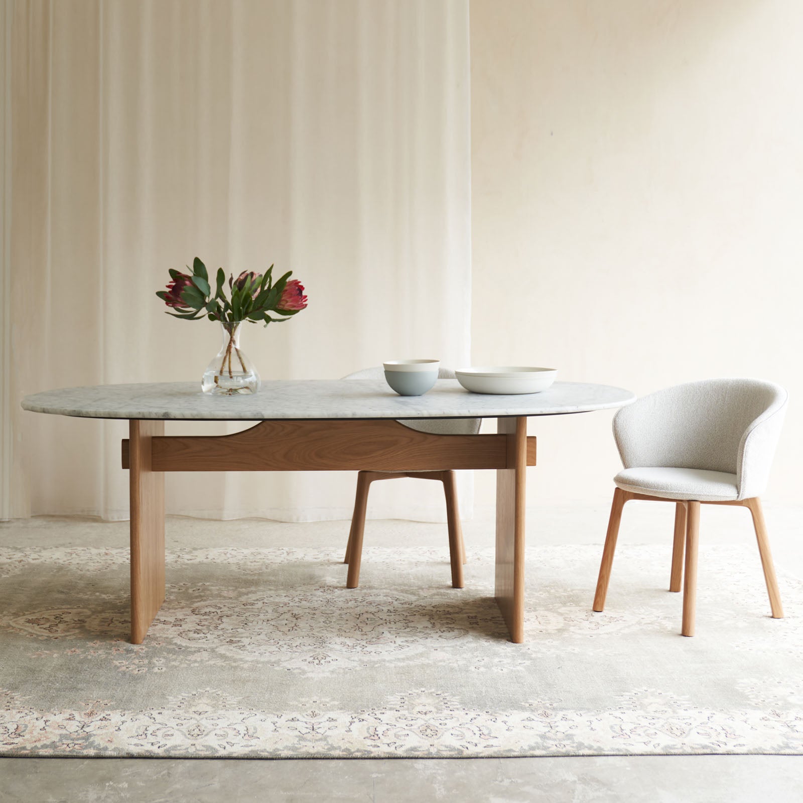 The Kelly Dining Table makes a captivating statement that will transform any dining space. Featuring a solid timber base and an elegantly smooth timber top, its contemporary design brings a fresh touch while making a bold impression in your dining area.