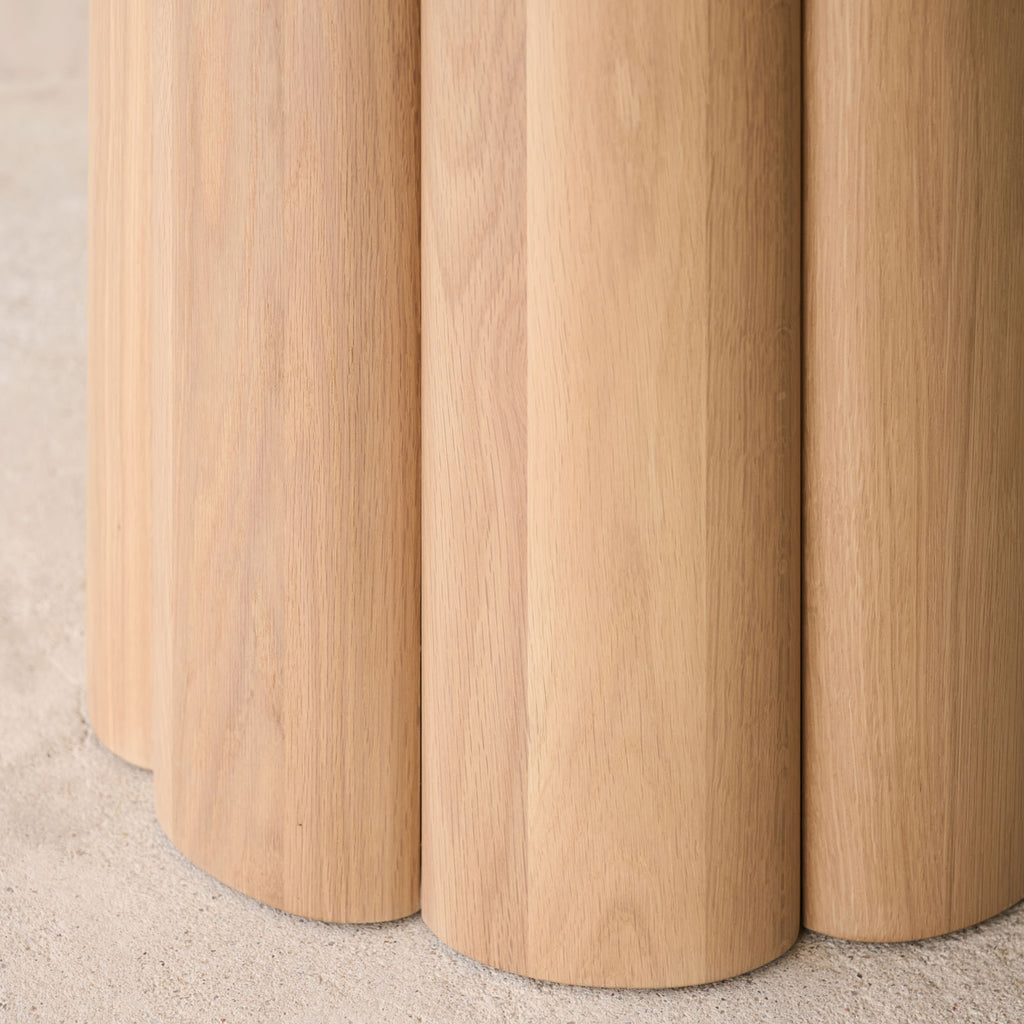 The Kora table is a timeless piece with its design rooted in the beauty of trees that make up the pedestal base. Organic forms result in a piece with no sharp edges and smooth transitions from light to shadow, reminiscent of the smooth bark of the eucalyptus or beech tree.