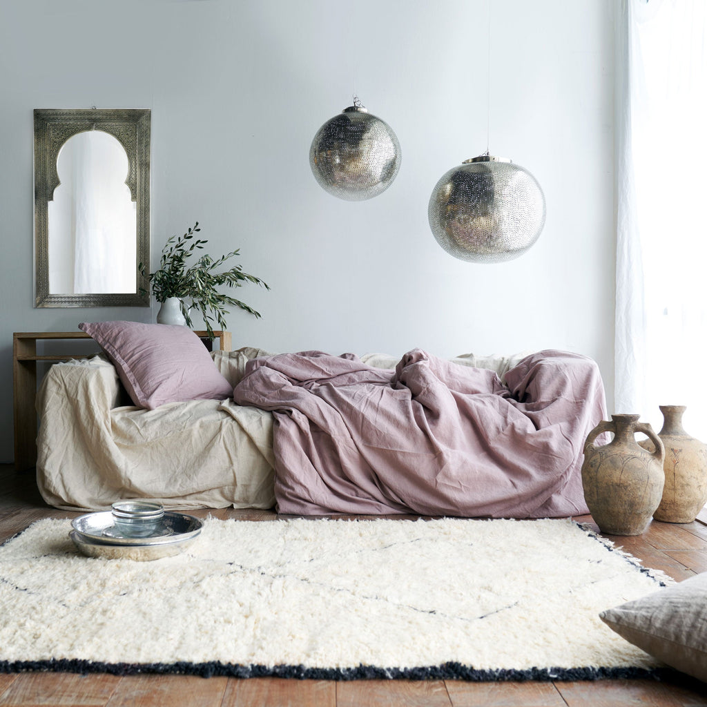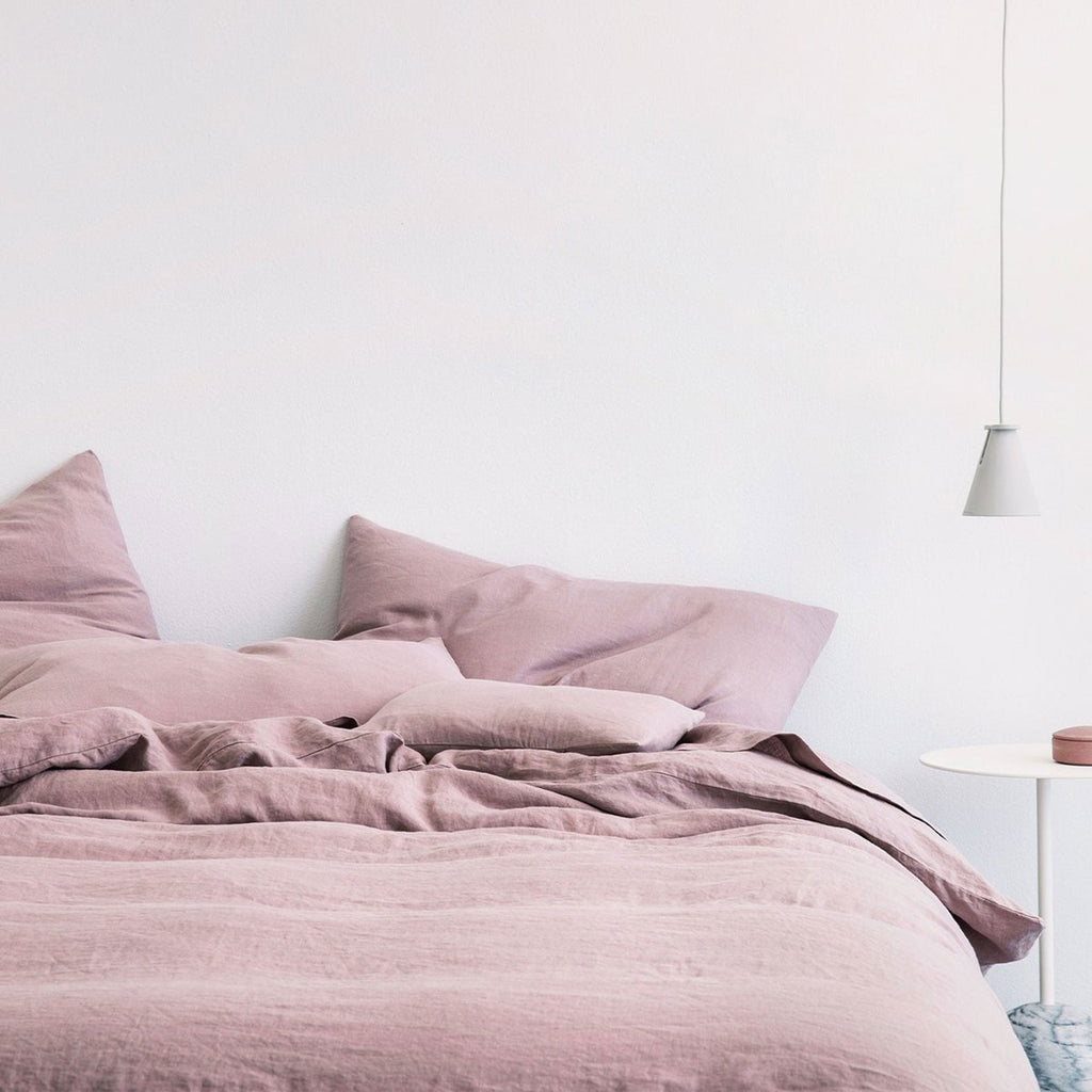This linen duvet sheet set is breathable and pre-washed for a soft vintage feel. Finished with a mother of pearl button closure and internal ties in each corner to secure your insert. Pillowcases feature a simple envelope closure at centre back and comes with a matching linen bag for convenient storage. Each Duvet Set consists of: 1 Duvet Cover & 2 Pillowcases. Made from premium European Flax™, with a refined weight of 165gsm. OKEO-TEX® certified.