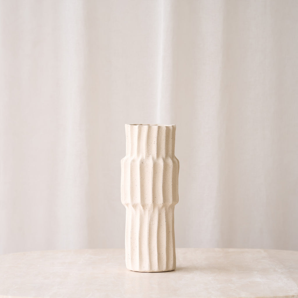 The Longa Vase is a striking piece that effortlessly combines modern design with timeless elegance. Its sleek, elongated form and refined finish make it a perfect centrepiece, adding a touch of sophistication and style to any decor.