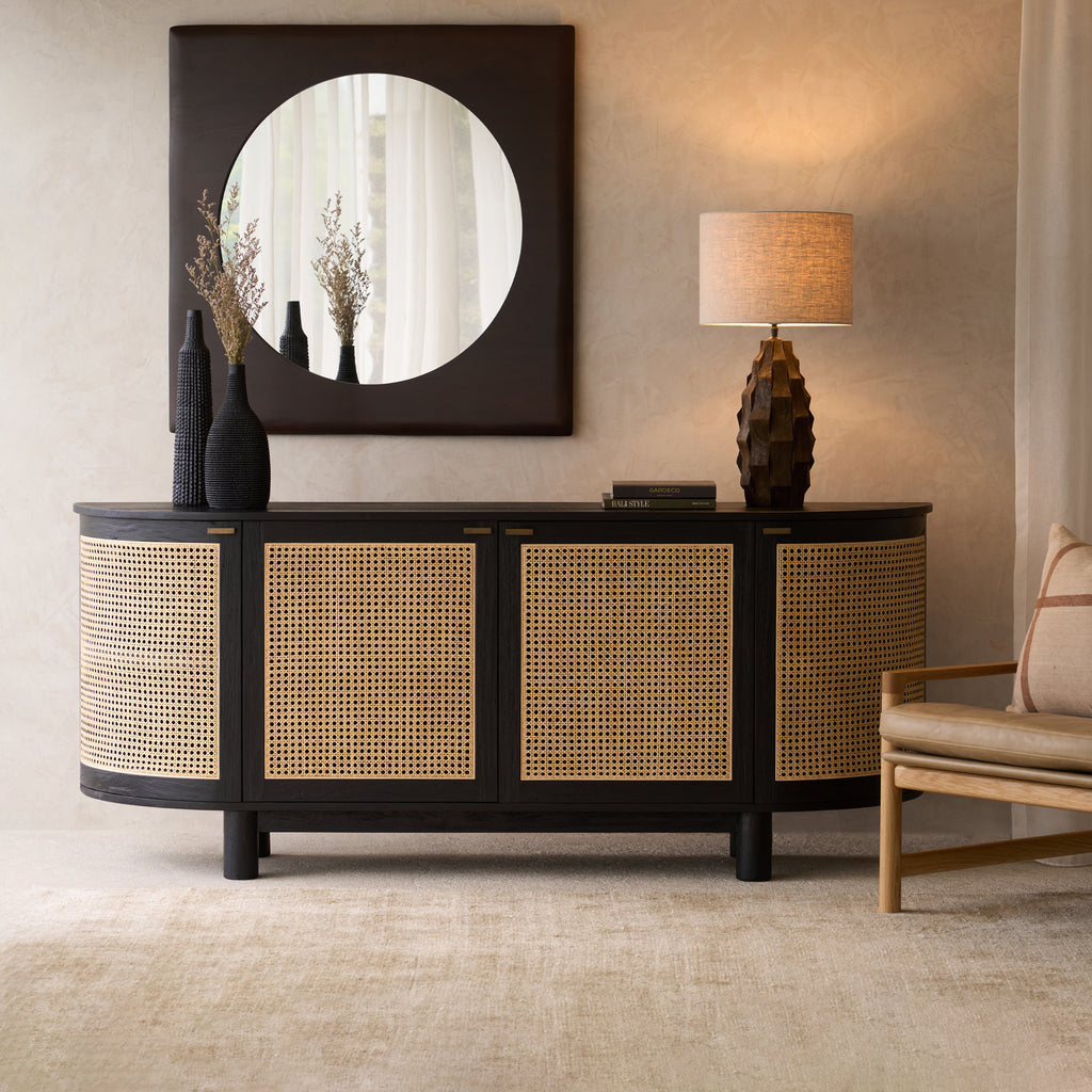 Luna Rattan Sideboard | Teak - Black (200cm)