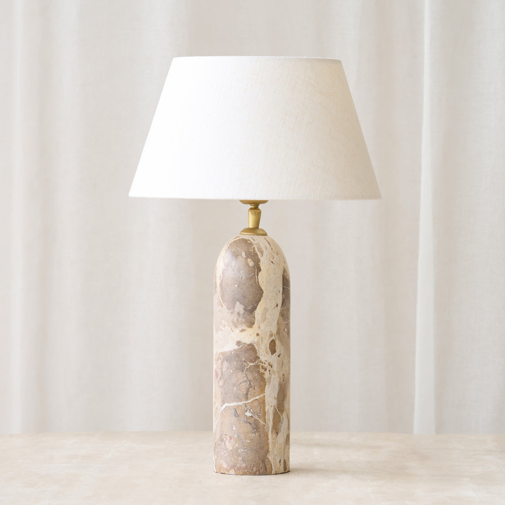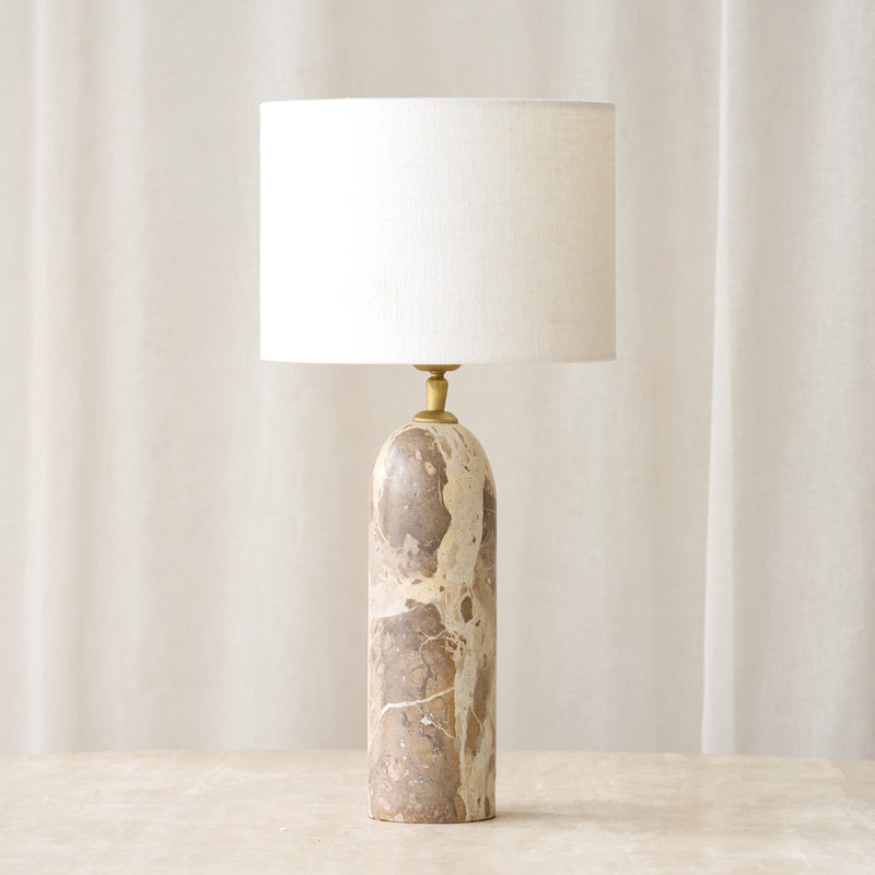 Maliki Table Lamp | Marble (35cm) Cylinder Shade White 25cm / Lamp Base - 9(Dia) x 35(H) cm / Marble