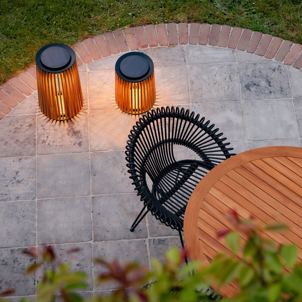 When you’re looking for a durable design lantern, the Maya Outdoor Lamp may be perfect for you. The lamp’s eye-catching body is made of repurposed teak slats, expertly handcrafted out of our own teak off-cuts. The teak slats uniformly embrace our solar LED module and contrast beautifully with the black powder coated frame. Through the gaps in the wooden shell, Maya will cast a warmly welcoming glow, creating a dreamy ambience in the blink of an eye.
