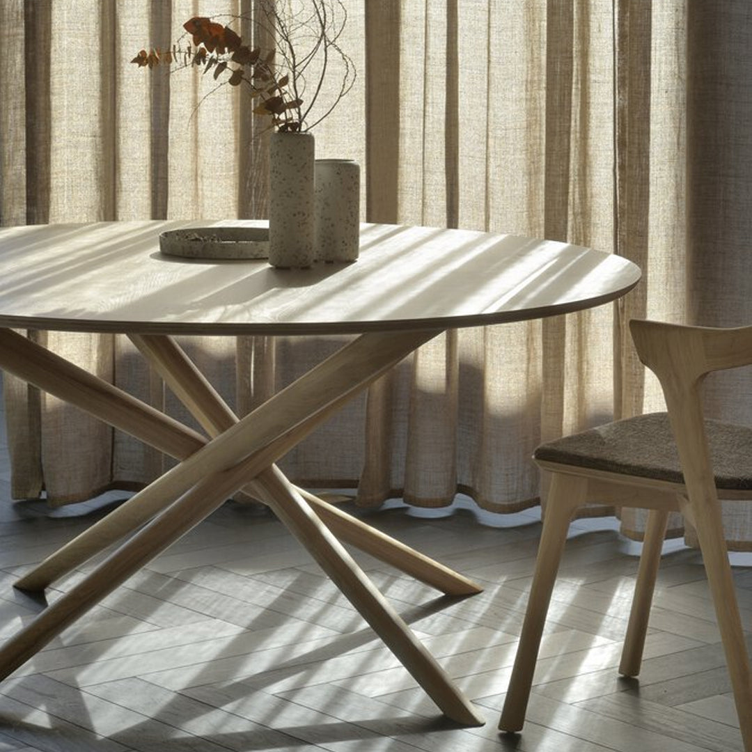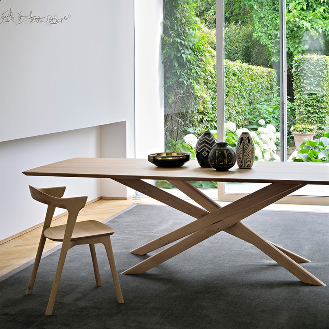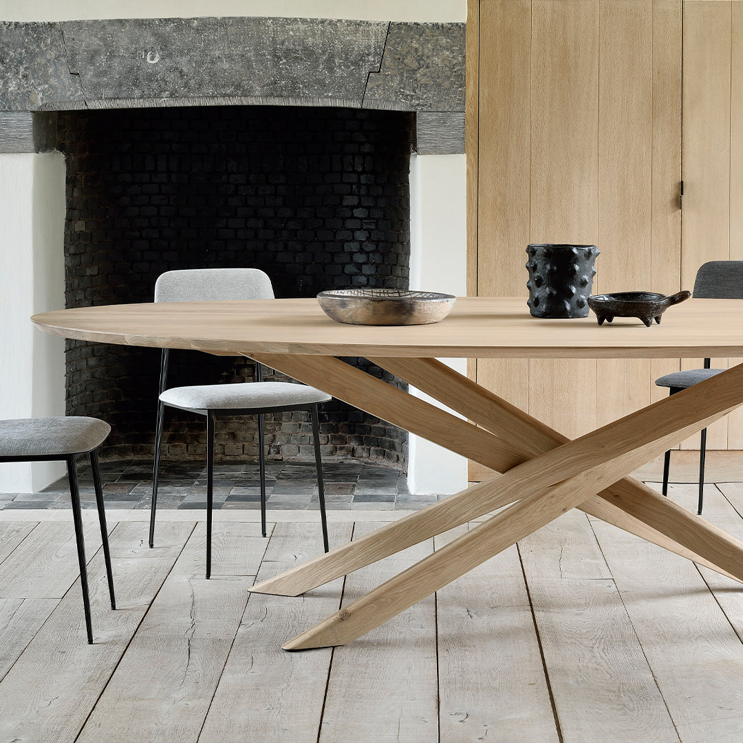 Mikado has been one of Ethnicraft’s most recognisable designs for years. Its sculptural character is the result of a quest to find a balance between functionality and stability. Mikado’s legs interlock like a well-thought-out puzzle. The Mikado Dining Table is characterised by its striking base design, featuring intersecting wooden legs that form a dynamic and visually captivating arrangement reminiscent of the game "Mikado" (also known as pick-up sticks).