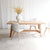 Crafted from premium, Grade A sustainably sourced teak wood, emanating warmth and lasting quality. Solid wood only, no veneers or engineered wood used in this piece. Finish is achieved through an intensive, multistep process that highlights the teak's rich grain. Clear satin lacquer finish for protection and easy day to day use. This item is artisan crafted with meticulous care. Given its handmade and hand-finished nature, variations in the wood are to be expected and celebrated. Each item is unique and no two are exactly alike. Use placemats or trivets under hot items and coasters under beverages to prevent marks and stains. To avoid scratches, do not place sharp or jagged objects directly on the tabletop. Wipe with a soft, damp cloth; avoid the use of harsh chemicals or abrasive cleaning materials.