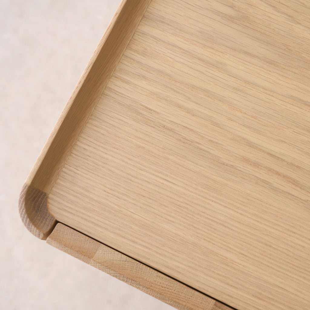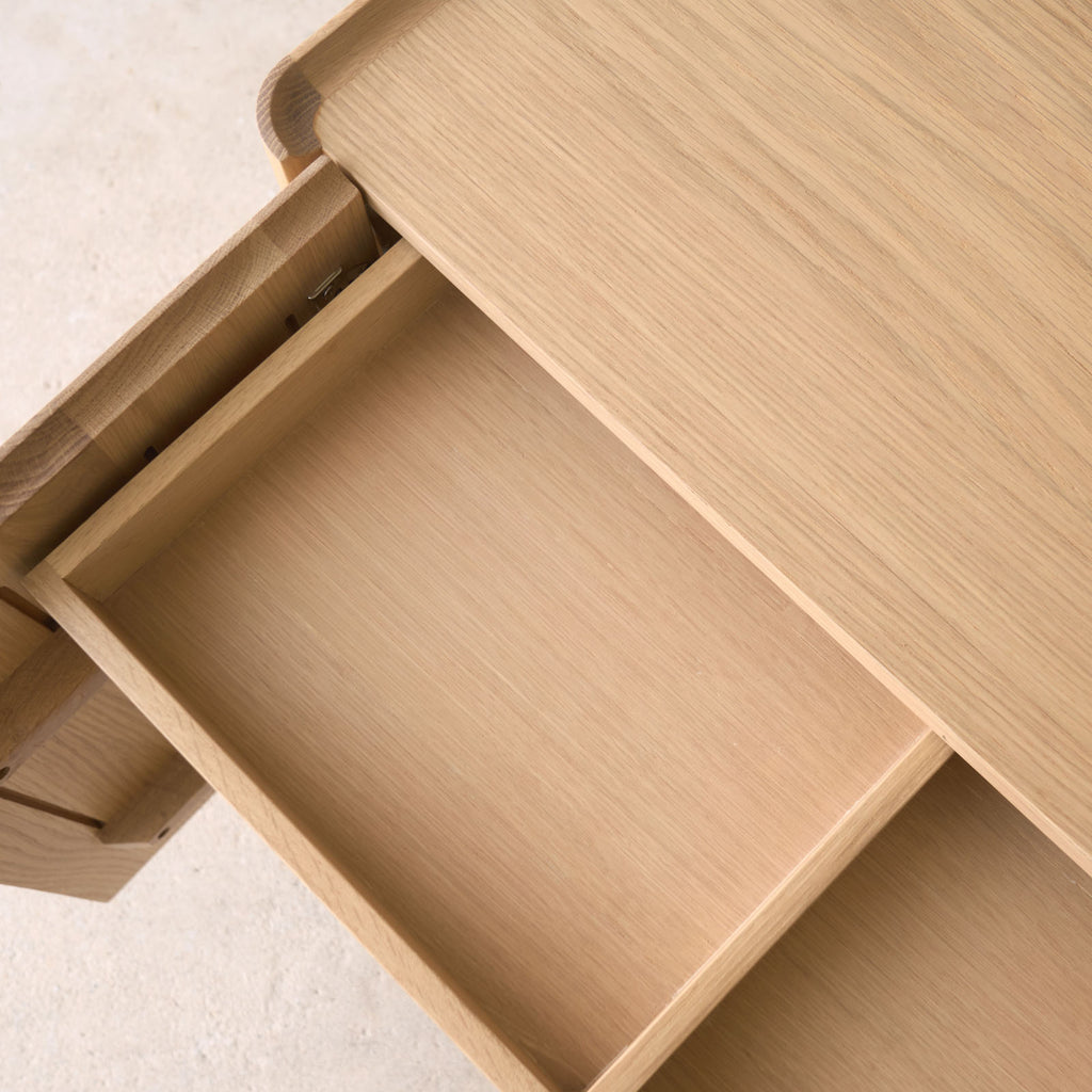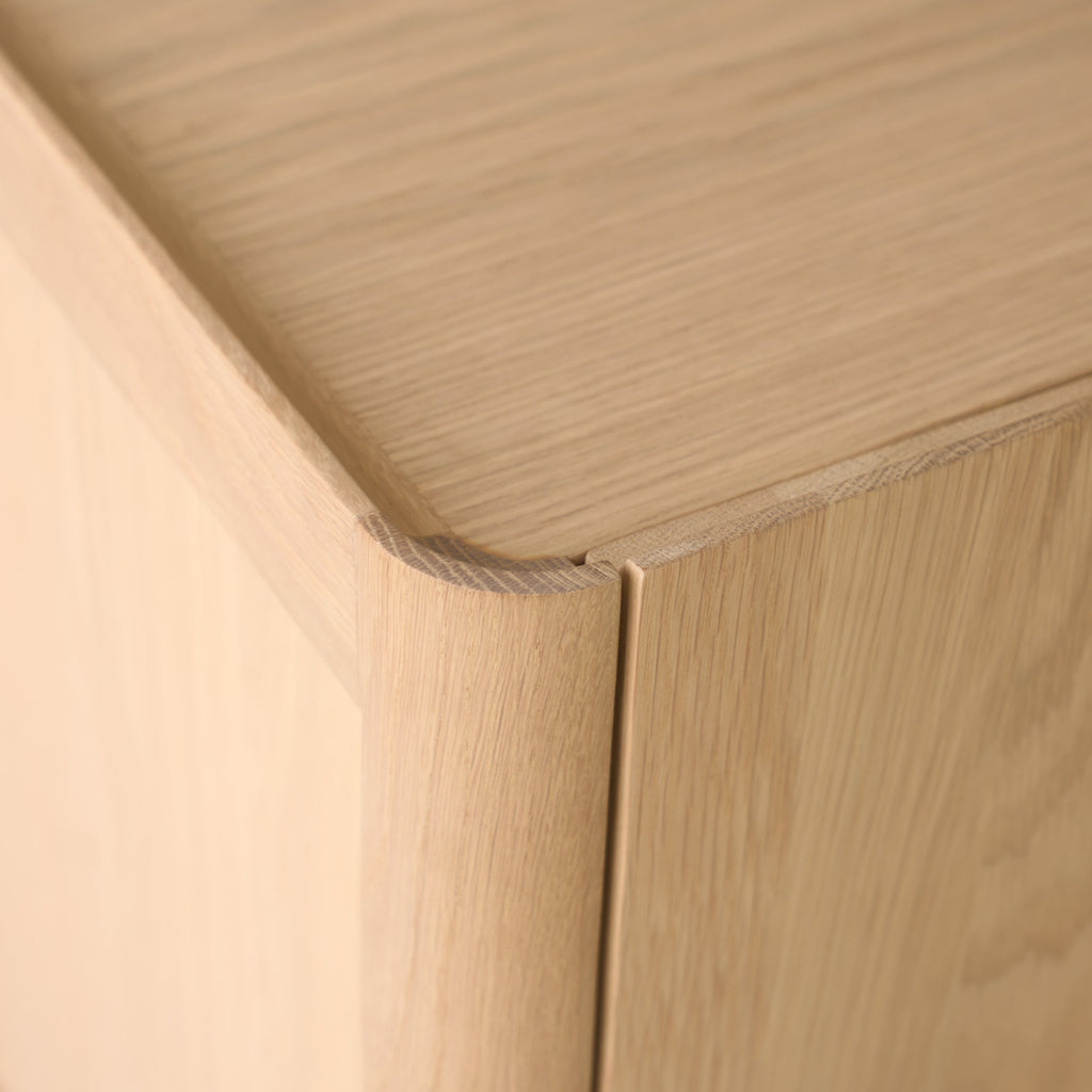 Optimise your living room with the Nell Oak Sideboard. A masterpiece of modern design that seamlessly blends harmonious elements to elevate your living space. Crafted to captivate both the eye and touch, every detail of this sideboard demands attention. Its distinctive scalloped top shelf not only offers a secure surface but also adds a touch of elegance. The sideboard is a true tribute to the artistry of timber craftsmanship and enduring architectural shapes, making it a timeless addition to your home.