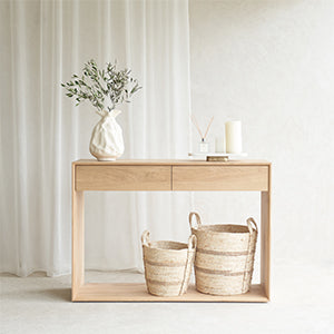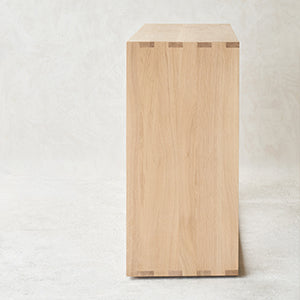 The Nordic Console by Ethnicraft is a striking piece that embodies the elegance of Scandinavian design. Crafted from solid oak, the console features a clean, minimalist aesthetic with smooth lines and subtle beveled edges that highlight the natural beauty of the wood.
