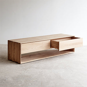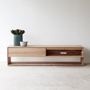 The Nordic TV Console by Ethnicraft is a striking piece that embodies the elegance of Scandinavian design. Crafted from solid oak, the TV console features a clean, minimalist aesthetic with smooth lines and subtle beveled edges that highlight the natural beauty of the wood.