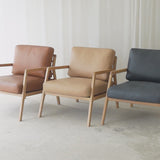The Nysse armchair boasts a solid oak frame and distinctive ladder back, complemented by soft edges and contemporary fabrics, providing exceptional comfort for hours of lounging. The solid hardwood oak frame is sturdy and timeless, ensuring durability and craftsmanship in your space. The seat and back cushions feature high-density foam layered and microfiber filling for a luxurious feel. Experience unmatched comfort with our advanced belt suspension for even support. Explore our range of bespoke fabric and leather options, designed to match your style and perfectly complement your living space. Seat & back covers are removable for easy cleaning. Avoid using leather polishes and harsh cleaning agents as this might damage the finish of the aniline leather.