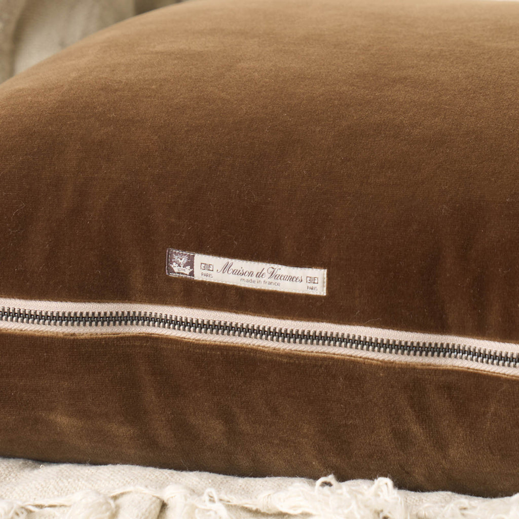 A luxurious, French-made cushion crafted from plush Palazzo velvet that beautifully catches light and texture. Made in France. - Zipper closure with leather detail.