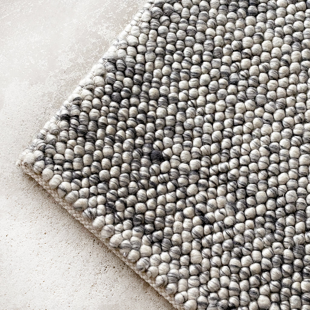 Composition - 80% blended wool, 20% cotton. Blended Wool rugs provide a soft and comfortable feel underfoot. Rug thickness: 1.5cm. Easy maintenance - Wool is naturally resistant to dirt and stains, while cotton is relatively easy to clean. The blend of wool and cotton helps regulate humidity, making the rug suitable for various environments. Handwoven - Each rug is handwoven by artisans in India, preserving local traditions. Yarns are pot-dyed by hand, a traditional method that produces authentic abrash color. Given the rug's handcrafted nature, slight variations in shading and size are inherent to the design. Thick cotton backing for easy cleaning and non slip Shedding of loose fibres is normal with new rugs. Shedding will diminish with regular vacuuming, typically within three to six months. Crafted in a factory certified by Fair Trade™, empowering the workers involved in its production. Made in India.