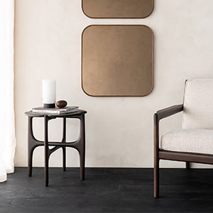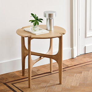 The PI collection honours nature’s design, by keeping the strength, curves, and lines, as nature intended. Interesting shapes are discovered in this sleek and stylish, polished imperfect, finish. Each PI side table is finished by hand to ensure that the individual character of the wood is respected. Designed by Alain van Havre.