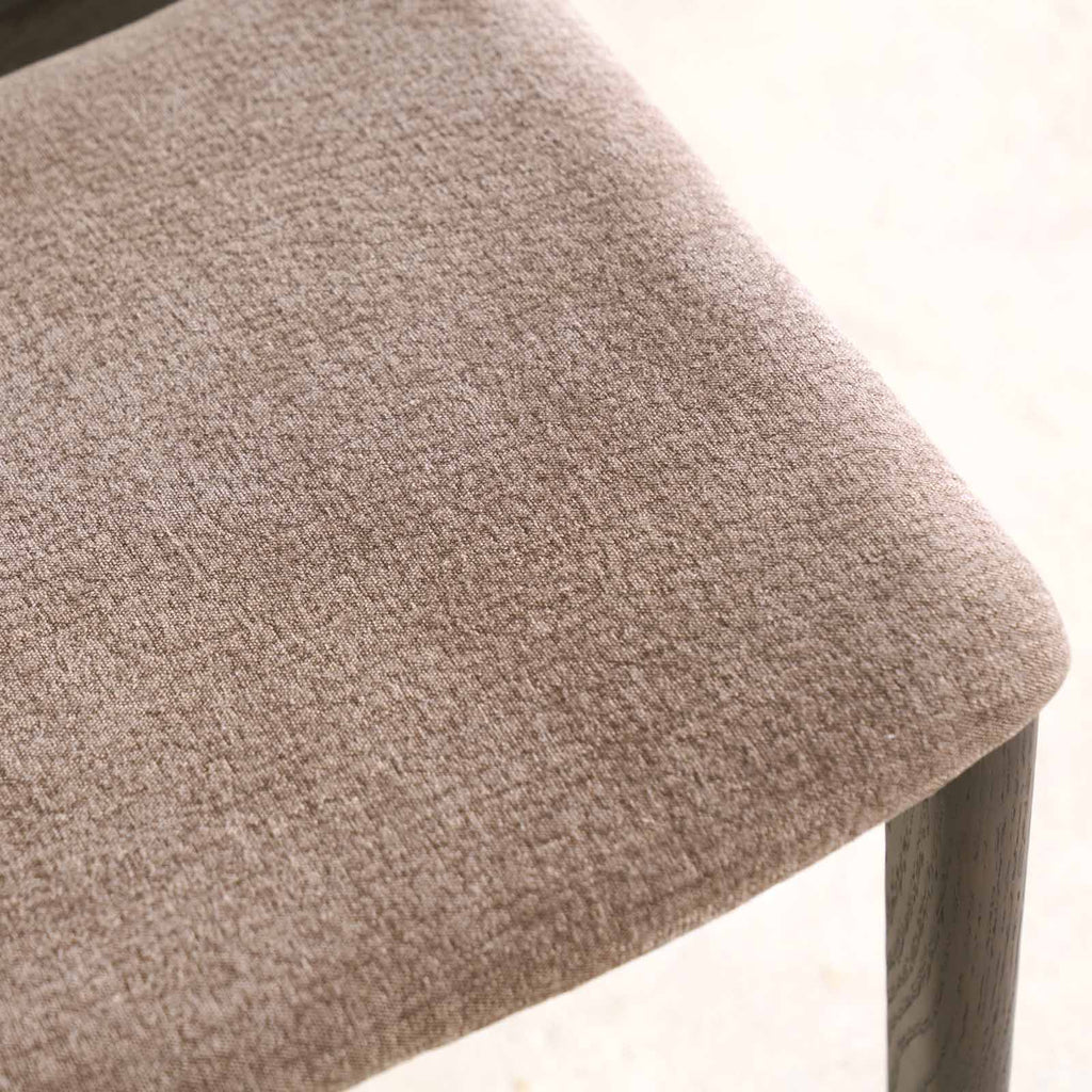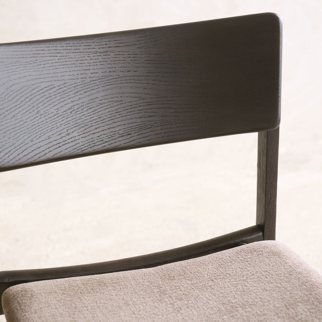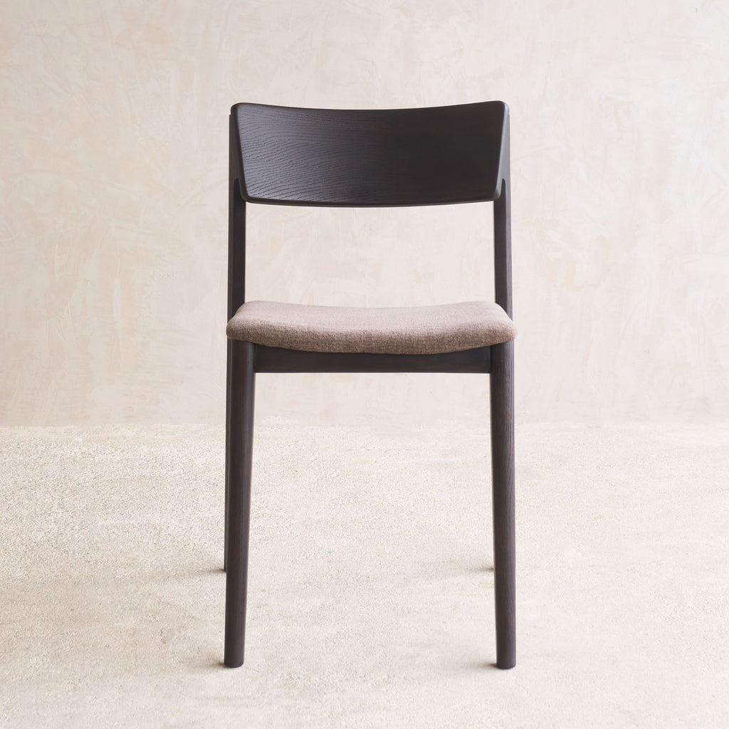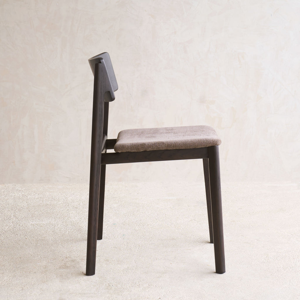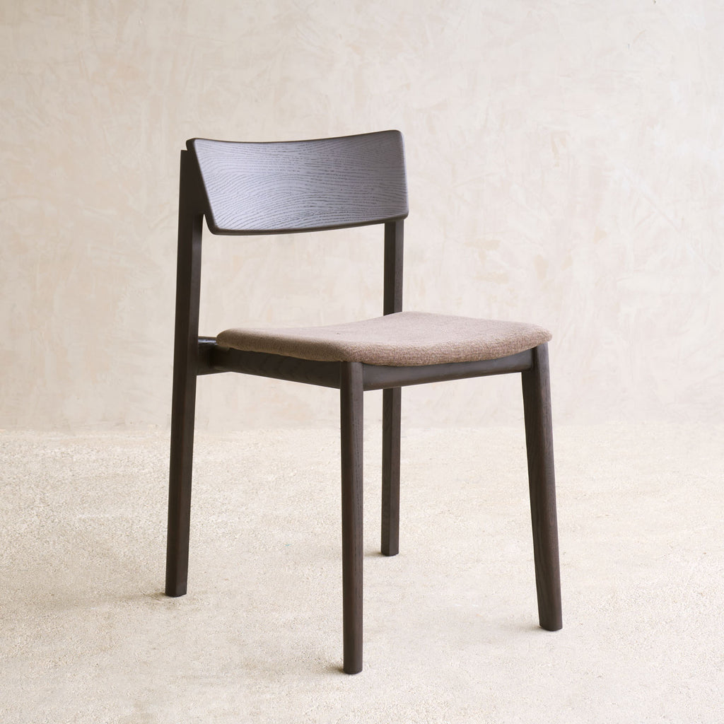 The Poise dining chair is offered in several variations: a complete solid oak version and an upholstered version available in both fabric and leather. The full oak version is crafted from solid oak timber, while the upholstered version features a solid oak frame with a plywood seat panel and high-density foam for added comfort.