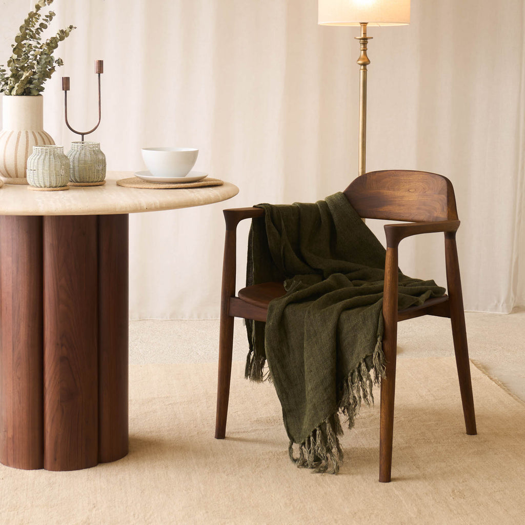 With its distinctive artistic charm, the Raku Teak Dining Chair effortlessly catches the eye, whether it's placed in a dining room or used as an accent chair.