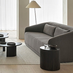 Designed by Jacques Deneef, the Roller Max Side Table is a clever multifunctional item that combines a side table with storage. Encapsulated in its stacked wood-stick effect, the tabletop can be easily removed to hide the newspapers, toys, cushions and throws from daily life. The perfect solution for smaller living.