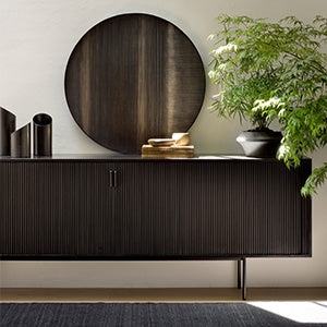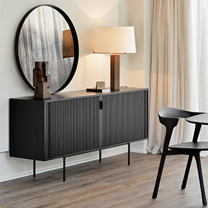 The Roller Max sideboard offers functional storage in an eye-catching design. Designed by Alain van Havre, it is not only elegant but also versatile, making it perfect for both residential and commercial settings. It features fully-opening sliding doors and adjustable shelves, providing customisable storage solutions.