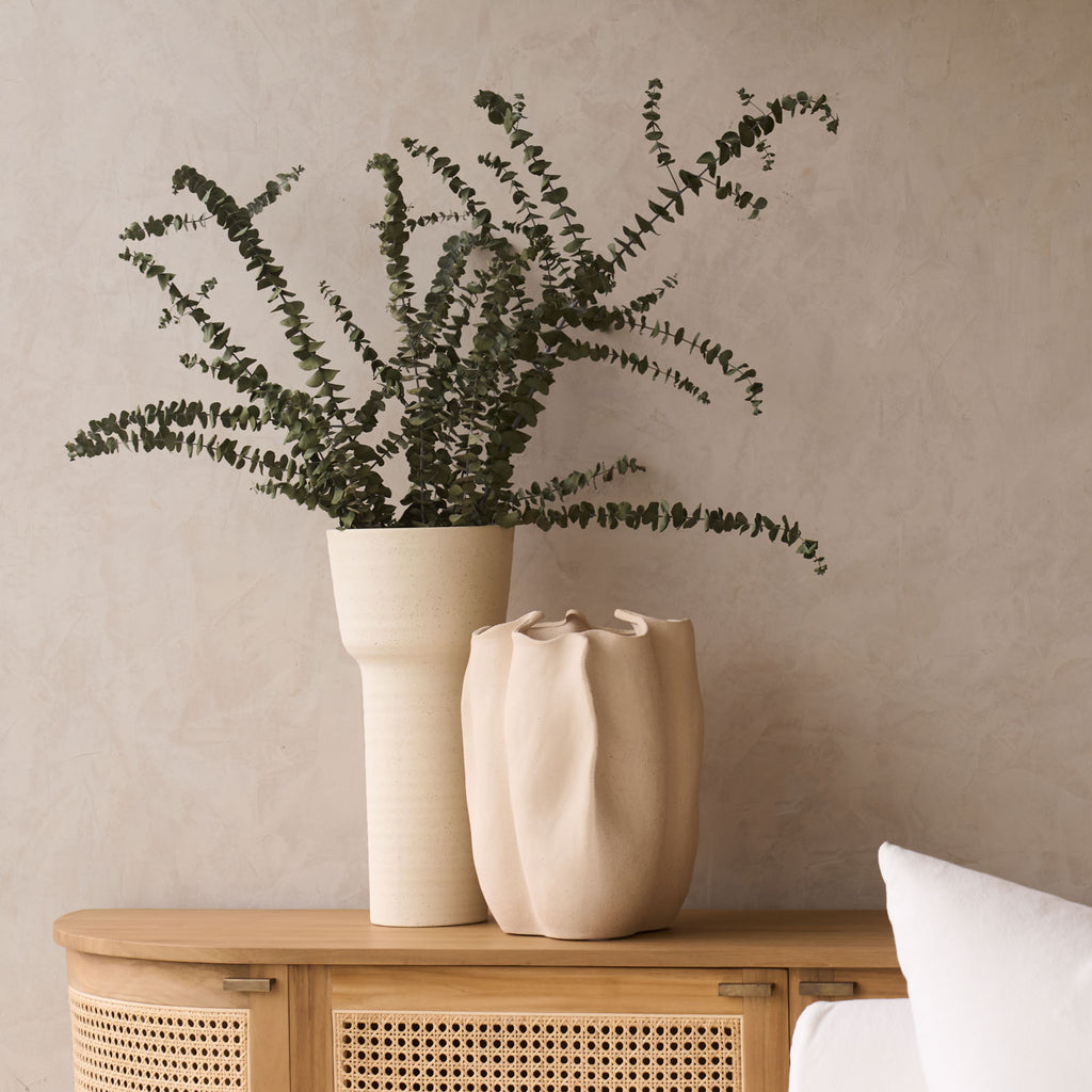 Add timeless charm to your space with the Sanguli Vase. Crafted from ceramic in a creamy finish, this vase features an organic, pot-shaped design that brings a touch of natural elegance to any décor. Perfect for displaying your favourite flowers or as a standalone decorative piece, it effortlessly enhances the beauty of your home.