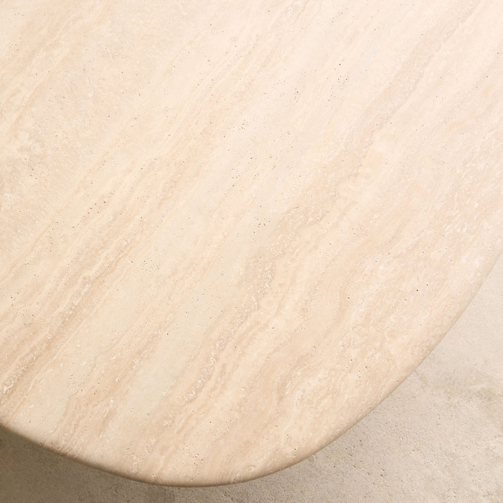 Our Eden coffee table is a perfect addition to any living space, this coffee table is perfect for a sophisticated interior and represents a balance and composure that is only ever found in nature. The base is meticulously crafted from solid American walnut or solid oak timber, with no use of veneers or engineered wood in the construction. Choose from premium Italian Travertine with its natural warmth and distinctive textures, or Bianco Carrara Marble, renowned for its pristine white colour and luxurious appeal. The clear satin lacquer finish is meticulously applied, providing a protective, smooth matte sheen that enhances the wood's natural beauty, highlighting its unique grain patterns. The protective clear matt sealant on our travertine and marble tops ensures lasting durability while preserving the natural beauty and texture of the surface. To protect the surface from heat and prevent marks and stains, always use a trivet or a coaster underneath hot plates, pans, or mugs. Use felt stoppers when you place decorative objects on the surface to prevent scratches or marks. Do not place sharp or jagged objects directly on the tabletop.