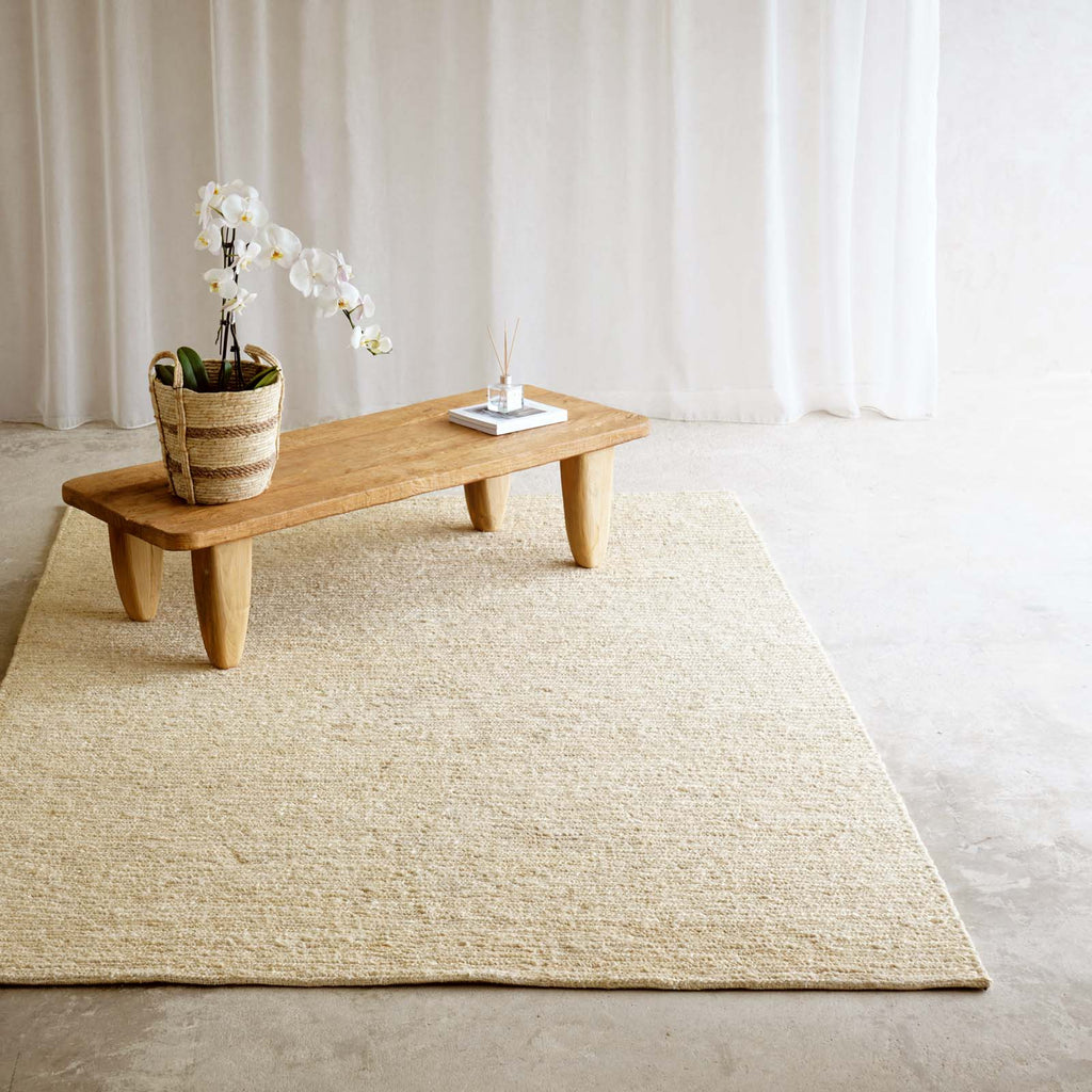 Composition - 100% hemp weave. Hemp fibres are strong and durable, contributing to the longevity of the rug. Rug thickness: 1.5cm Handwoven - Each rug is handwoven by artisans in India, preserving local traditions. Yarns are pot-dyed by hand, a traditional method that produces authentic abrash color. Given the rug's handcrafted nature, slight variations in shading and size are inherent to the design. Shedding of loose fibres is normal with new rugs. Shedding will diminish with regular vacuuming, typically within three to six months. Crafted in a factory certified by Fair Trade™. Made in India.