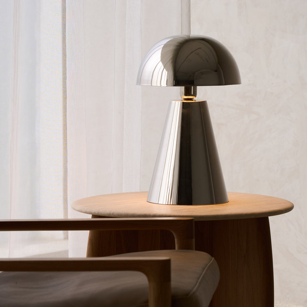 The Surrina Table Lamp showcases a refined metal construction and a thoughtfully balanced silhouette. Its domed shade diffuses light softly, while the conical base adds a modern, sculptural touch, perfect for curated living spaces.