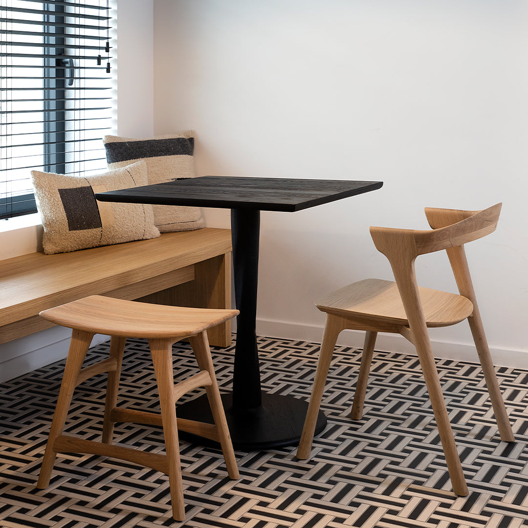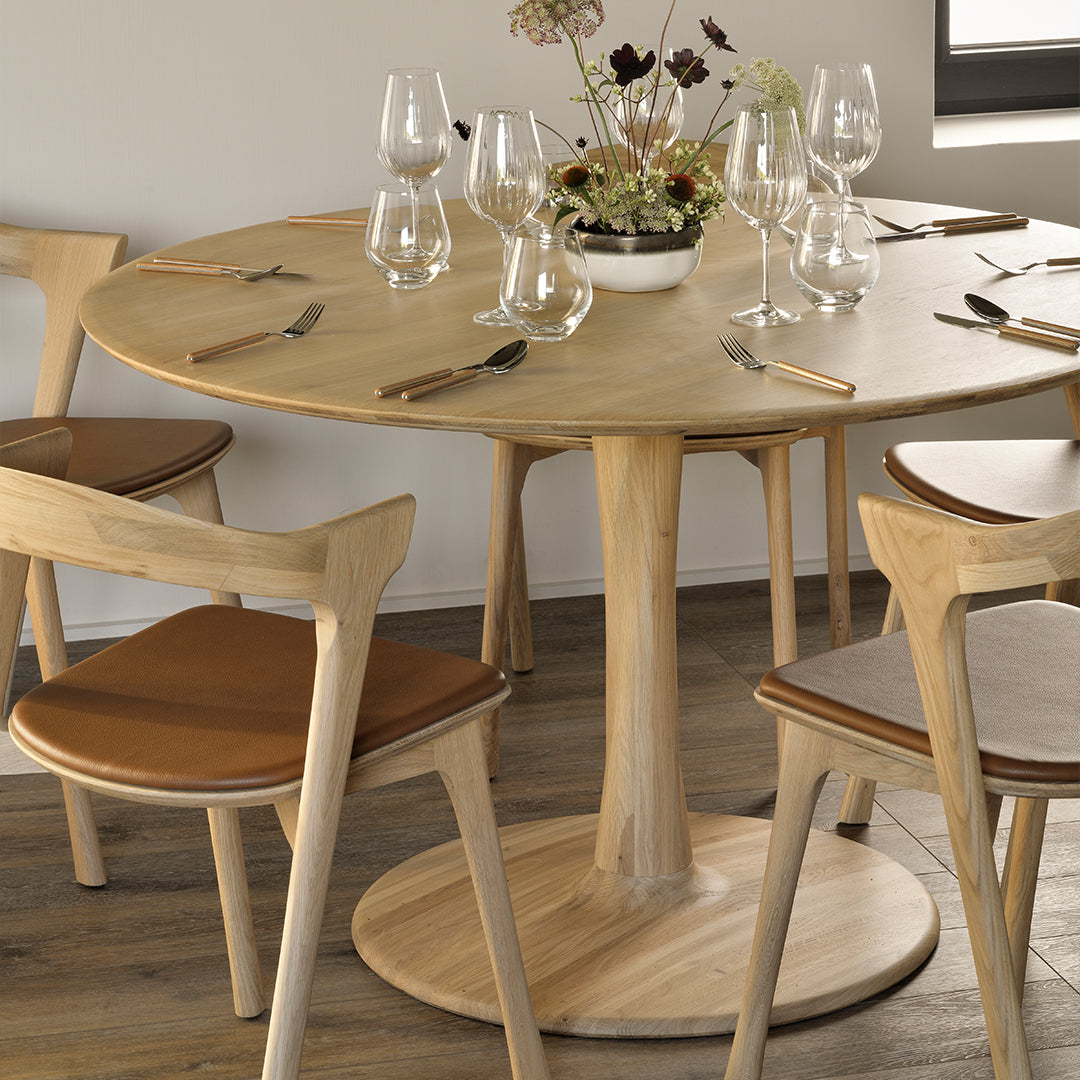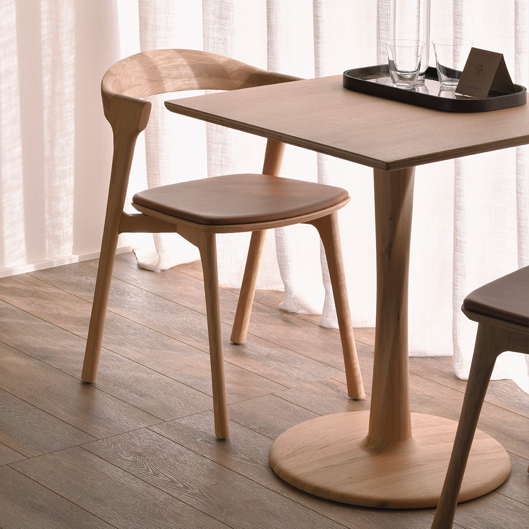 Alain van Havre's known and loved Torsion design, with a solid oak square table top. The dining table - an epitome of advanced woodworking techniques - oozes simple elegance and complements every interior. With its torsade base, the Torsion adds sculptural elegance in any smaller space thanks to its smart sizing and shape options.