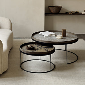 The collection includes various sizes and shapes, from small side tables to larger coffee tables, making it suitable for a variety of spaces. The simple yet refined design allows these tables to blend effortlessly into different interior styles, from contemporary to more traditional settings.