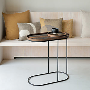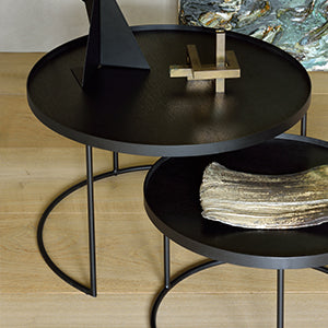 The Tray Table collection from Ethnicraft is a versatile and stylish range of furniture that combines functionality with minimalist design. Each table in the collection features a sleek, removable tray top crafted from solid wood or lacquered surfaces, paired with a sturdy black metal frame.