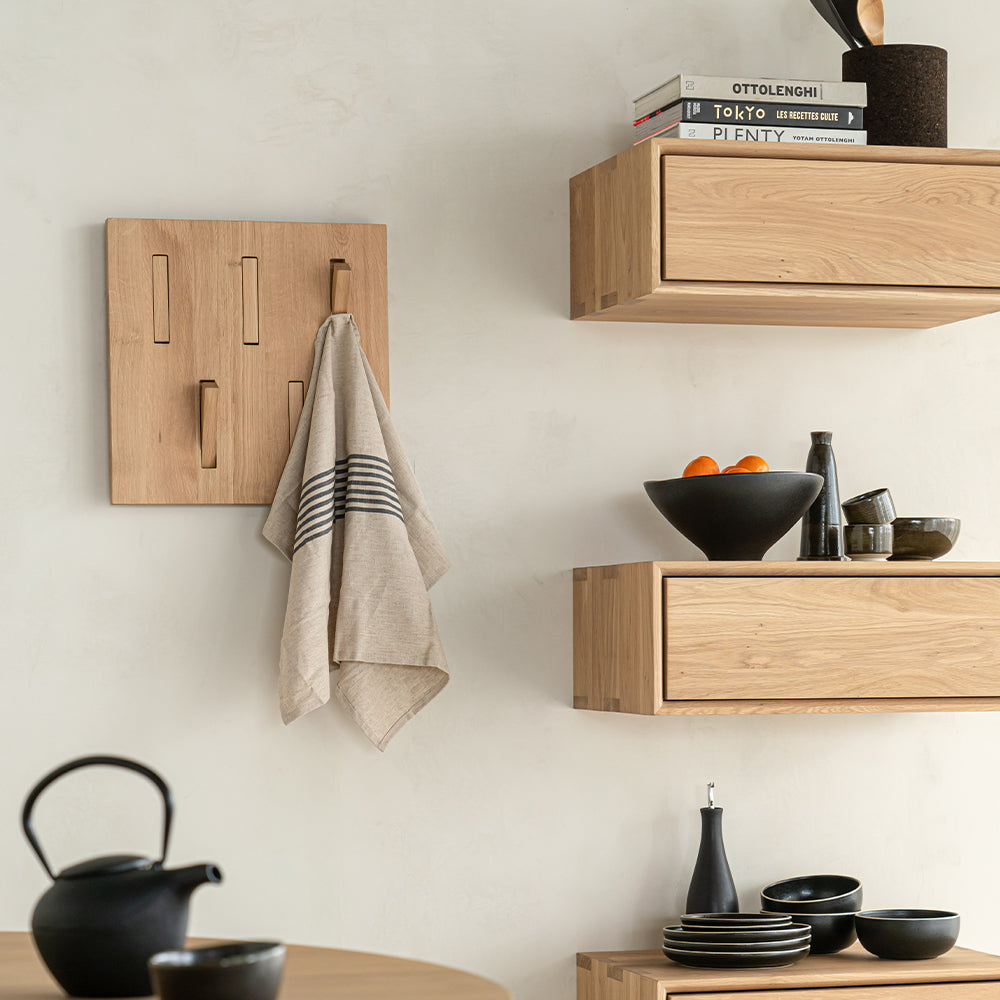The Utilitile Wall Hanger by Ethnicraft is a minimalist design that combines elegance and practicality, crafted from solid oak. Designed to elevate the functionality of your hallway or entryway, this piece offers an understated yet sophisticated solution for organising coats and accessories.